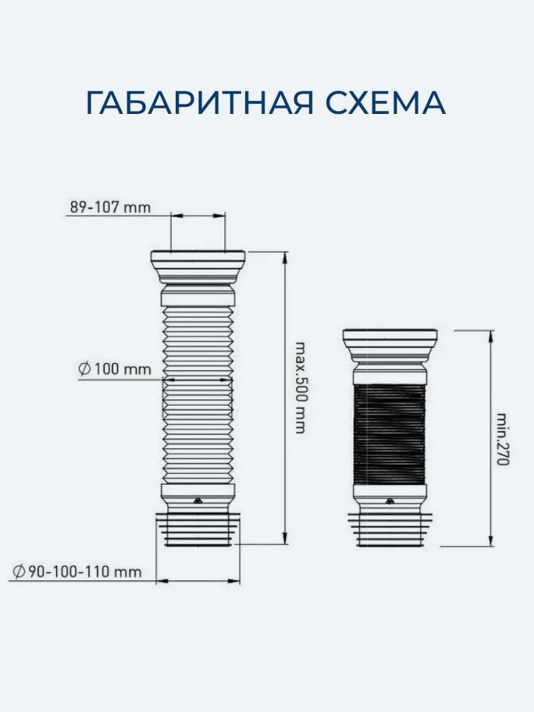 Гофра для унитаза Aquanet 270-500 мм