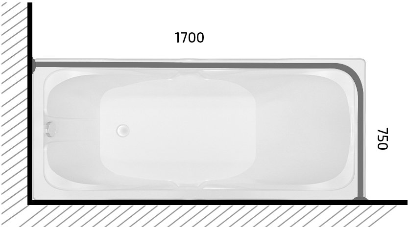 Угловой карниз для ванны Triton Щ0000052813 170x75 см, Г-образный, глянцевый хром