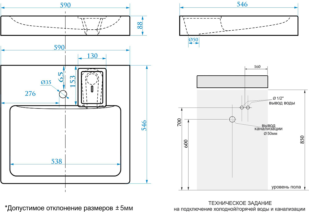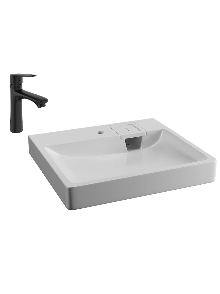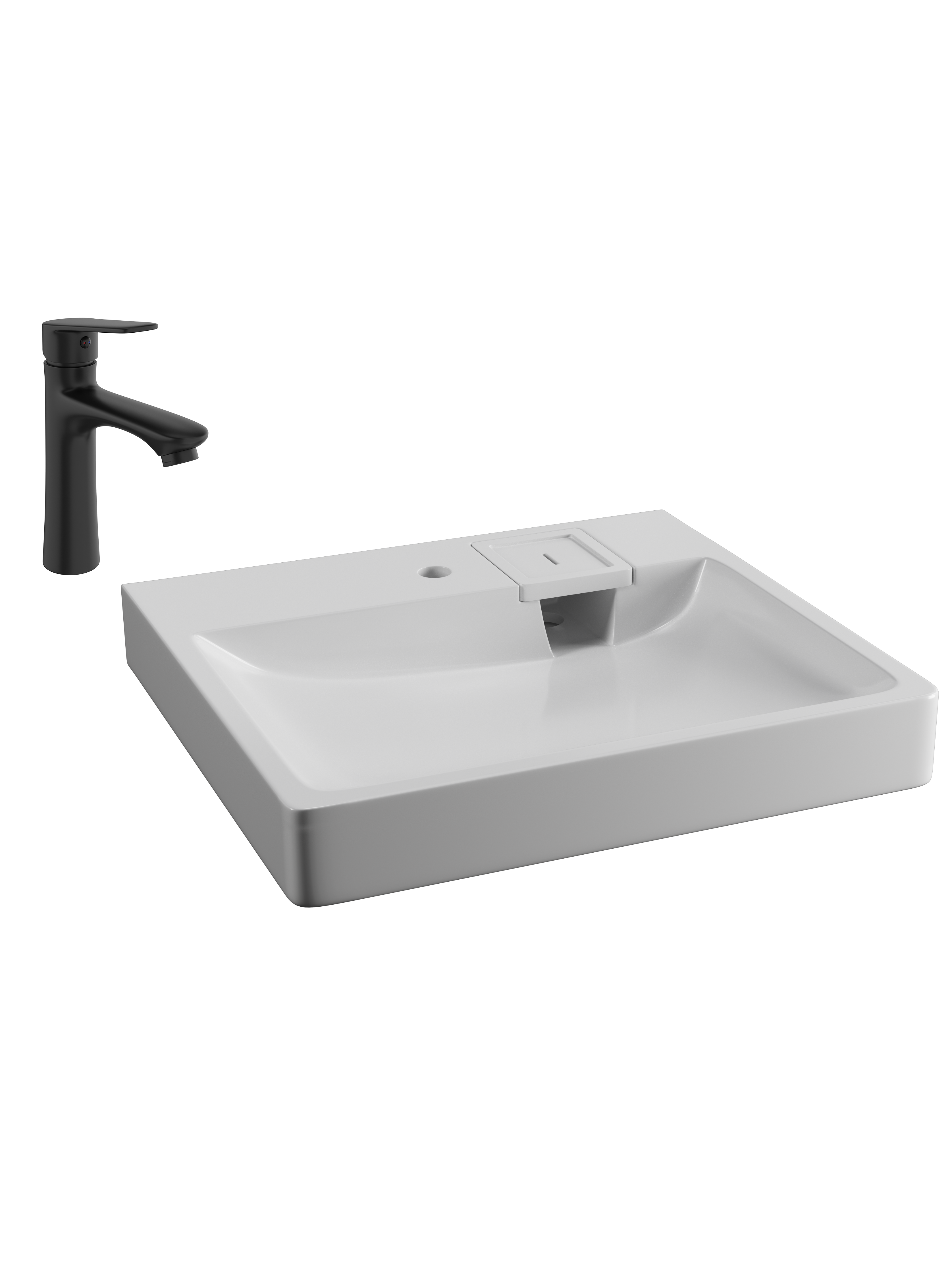 Комплект 2 в 1 Раковина DIWO Коломна RnDKA-60 + Смеситель Тула DW-TU03BK, матовый черный
