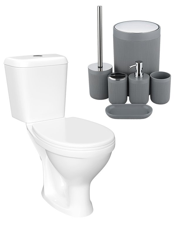 Комплект 2 в 1 Унитаз-компакт DIWO Сочи 0402 + Набор DW-SO61GRCR, матовый серый, хром