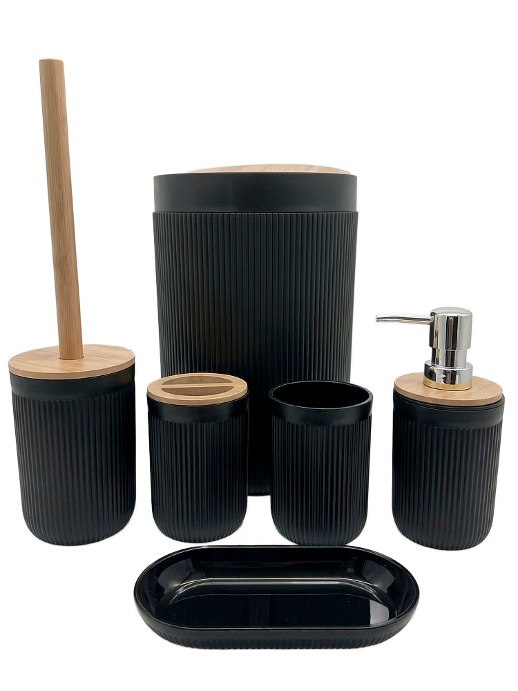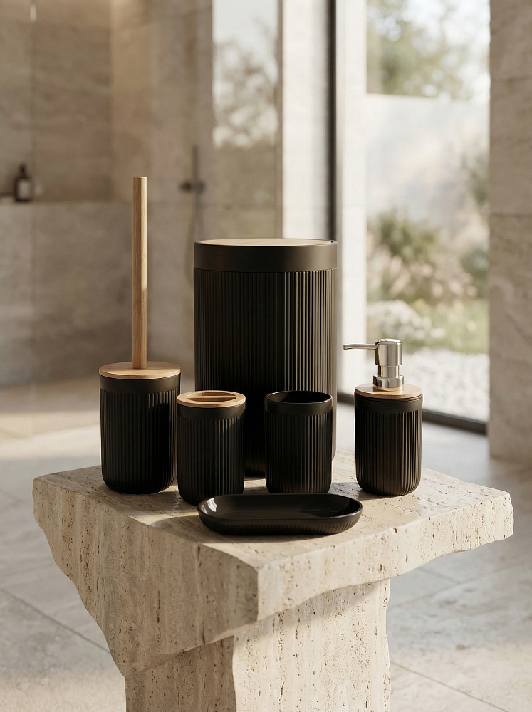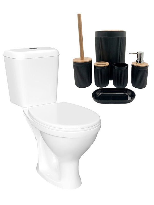 Комплект 2 в 1 Унитаз-компакт DIWO Сочи 0402 + Набор DW-SO61WDBK, матовый черный, светлое дерево