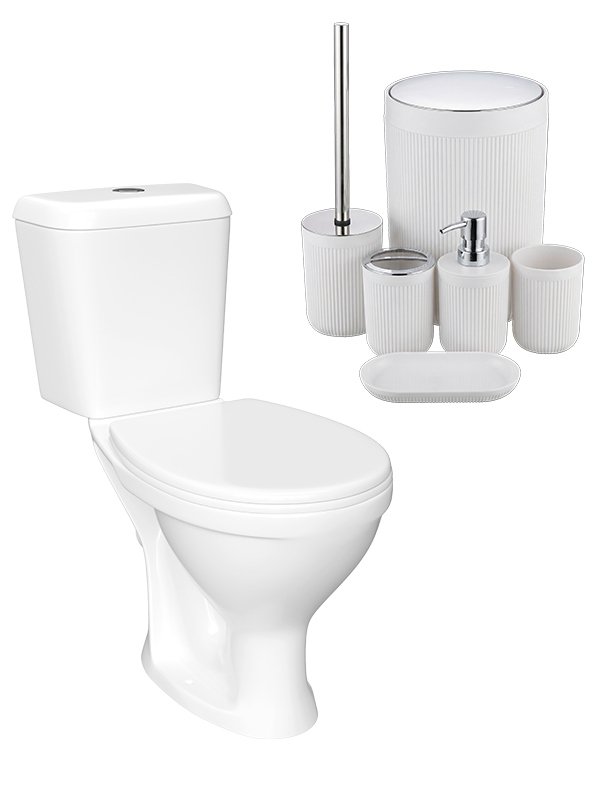 Комплект 2 в 1 Унитаз-компакт DIWO Сочи 0402 + Набор DW-SO61WHCR, матовый белый, хром