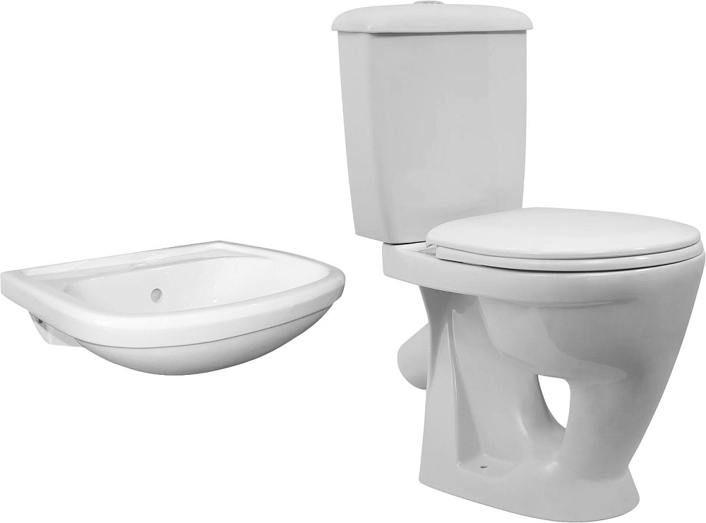 Комплект 2 в 1 Унитаз-компакт Оскольская керамика Радуга тарельчатый + Раковина Альфана 52