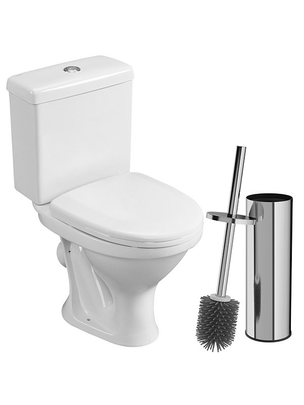 Комплект 2 в 1 Унитаз-компакт Santeri Форвард 1.P205.2.S00.00B.F + Ершик STWORKI Стокгольм S36395CR напольный, глянцевый хром