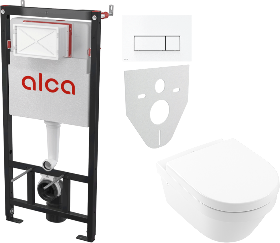 Подвесной унитаз Villeroy & Boch Architectura 4694HR01 в комплекте с инсталляцией AlcaPlast AM101/1120-4:1 RU M570-0001 – это идеальное решение для тех, кто ценит современный дизайн, надёжность и удобство в использовании. Благодаря своей конструкции, унитаз обеспечивает не только эстетически привлекательный вид, но и максимальную функциональность.Инсталляция AlcaPlast AM101/1120-4:1 RU M570-0001 отличается продуманной системой регулировки, которая позволяет адаптировать её под различные условия монтажа. Регулируемые выдвижные ножки в диапазоне 0–20 см с тормозной системой обеспечивают устойчивость и надёжность конструкции. Конструкция рамы позволяет производить монтаж к профилю для гипсокартона или к несущей стене, что делает установку простой и удобной.Бачок унитаза изготовлен из одного фрагмента полипропилена, что гарантирует его 100% герметичность. Крышка сервисного отверстия упрощает процесс монтажа и защищает от влаги и грязи. Конструкция полистирольной изоляции предотвращает конденсацию на поверхности бачка и ослабляет вибрацию в строительной конструкции.Унитаз оснащён двойным смывом, независимо регулируемым, с гигиеническим резервом. Это позволяет экономить воду и обеспечивает эффективное очищение. Подходит для установки пневматического или сенсорного смыва, совместима со всеми кнопками управления Alca. Возможность сервиса без использования инструментов делает обслуживание унитаза ещё более удобным.Угловой вентиль с возможностью подключения к системе трубопроводов Mepla обеспечивает лёгкость интеграции в существующую водопроводную систему. Конструкция также предусматривает возможность установки кронштейна с переходом DG 1/2" для подключения сиденья-биде или бидетты.Монтажная глубина рукава регулируется в диапазоне 2–9,5 см, что обеспечивает гибкость при установке. Материал несущей конструкции – металл, обработанный порошковой краской, гарантирует долговечность и устойчивость к коррозии. Несущая способность конструкции составляет 400 кг, а рабочий диапазон давления воды – от 0,05 до 1,6 МРа. Рекомендуемый диапазон давления воды – от 0,03 до 0,5 МРа.