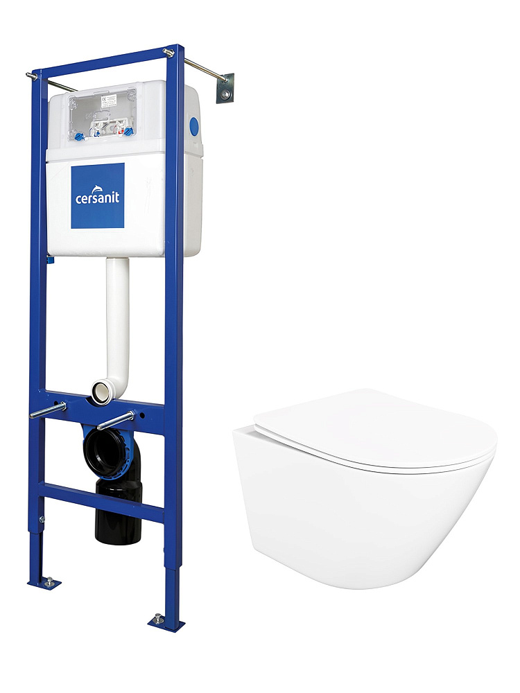 Комплект 3 в 1: Инсталляция Cersanit Вектор (Vector) S-IN-MZ + Унитаз подвесной STWORKI Левангер S07401WH безободковый, с микролифтом + Комплект креплений