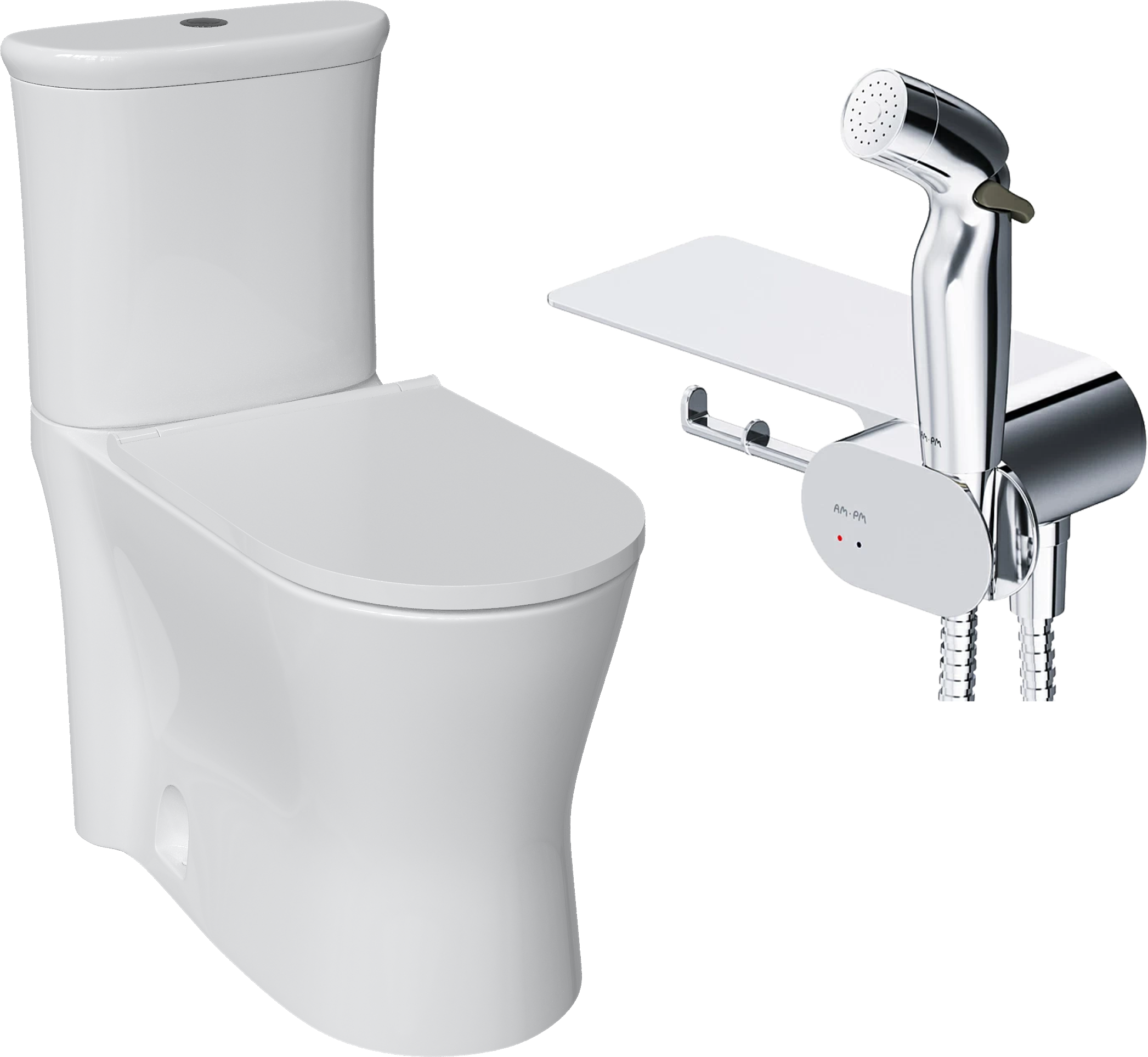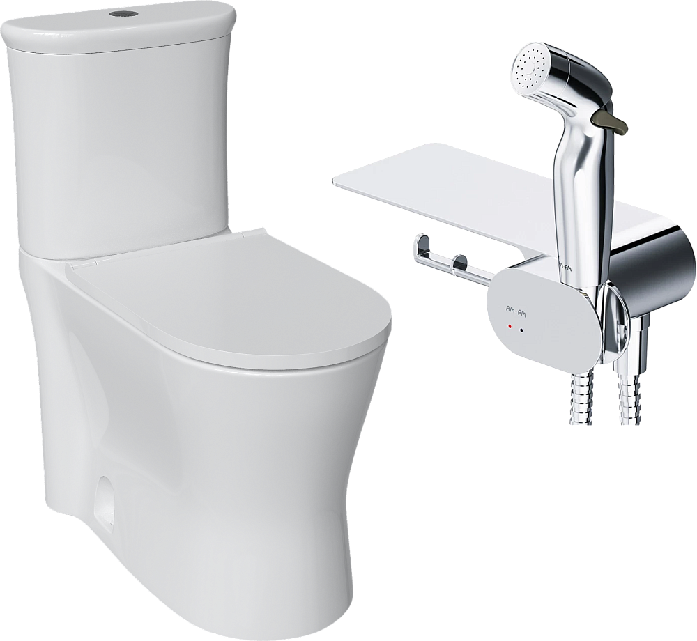 Комплект 3 в 1 Унитаз-компакт DIWO Кострома 0422 крышка белая с микролифтом + Бачок 0422 + Гигиенический душ AM.PM Like F0202600 С ВНУТРЕННЕЙ ЧАСТЬЮ, со смесителем, хром