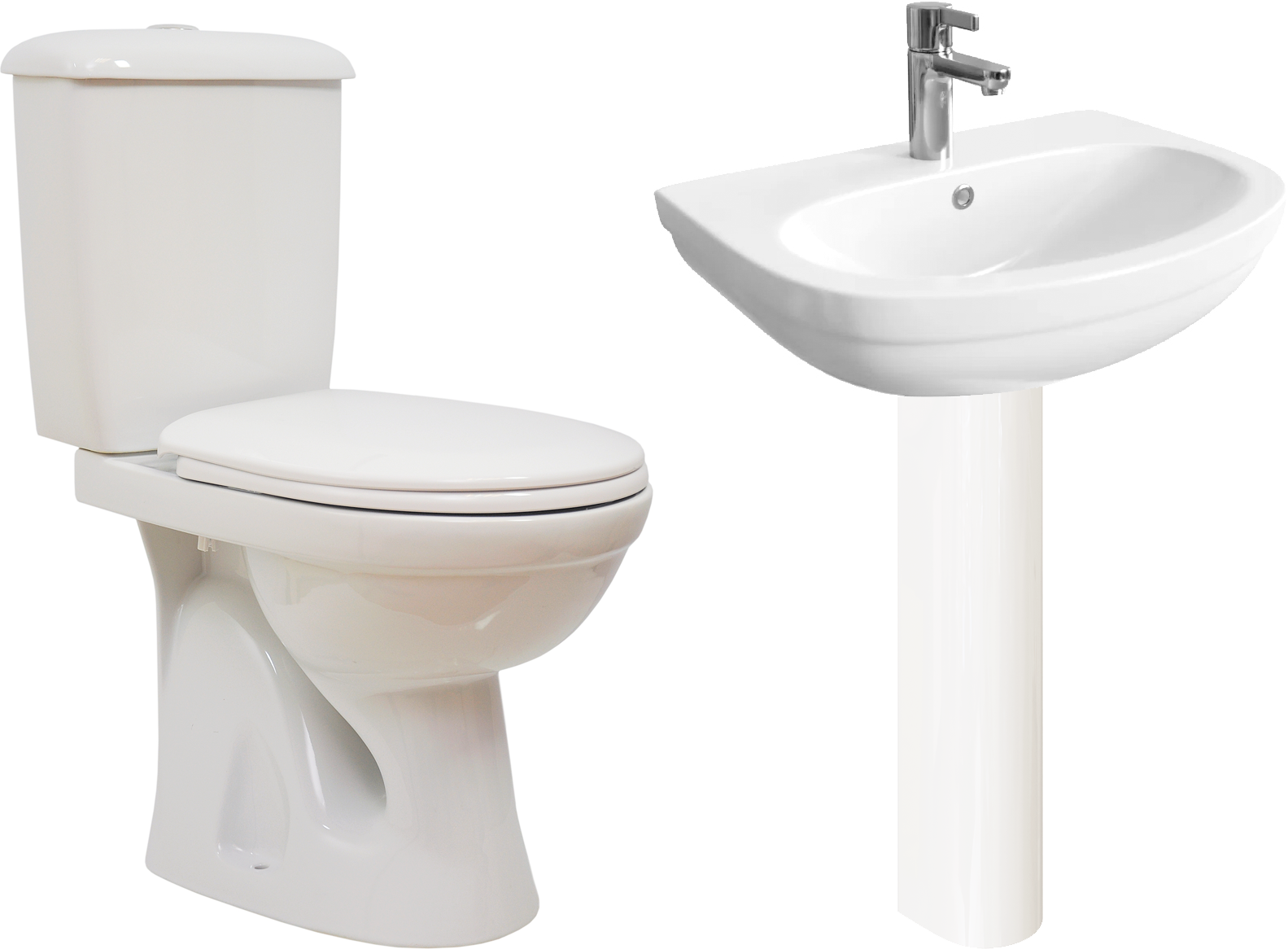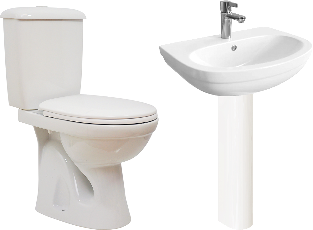 Комплект 3 в 1 Унитаз-компакт Оскольская керамика Суперкомпакт 44901110022 + Раковина DIWO Коломна 0110 55 подвесная, фаянсовая, белая + Пьедестал 200 70 см, полукруглый, фаянсовый, белый