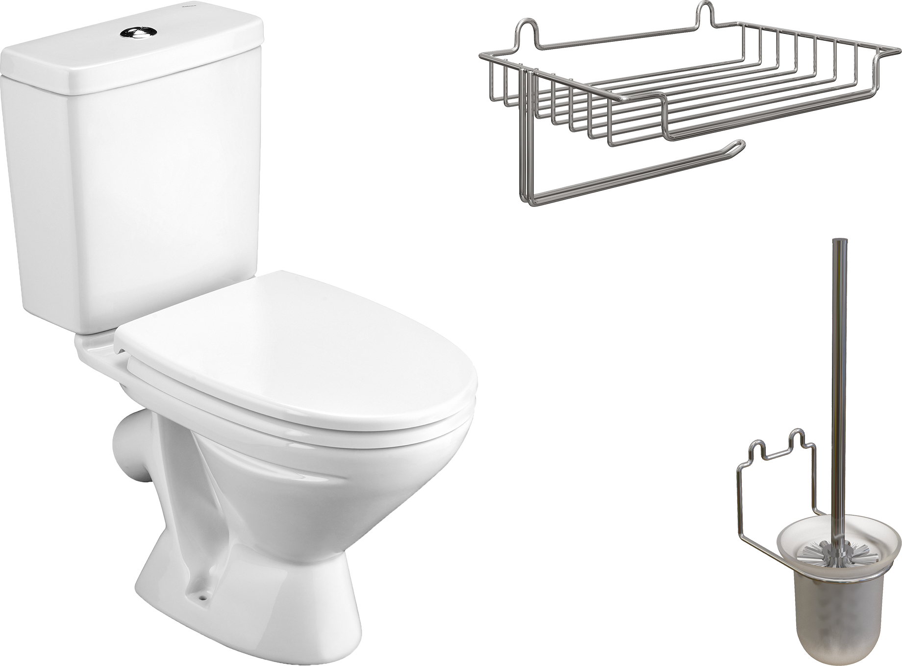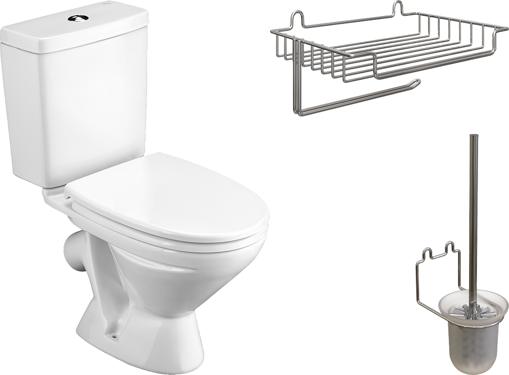 Комплект 3 в 1 Унитаз-компакт Santek Лига 1WH302141 + Держатель DIWO Смоленск П16544 хром + Ершик ПК14801 хром