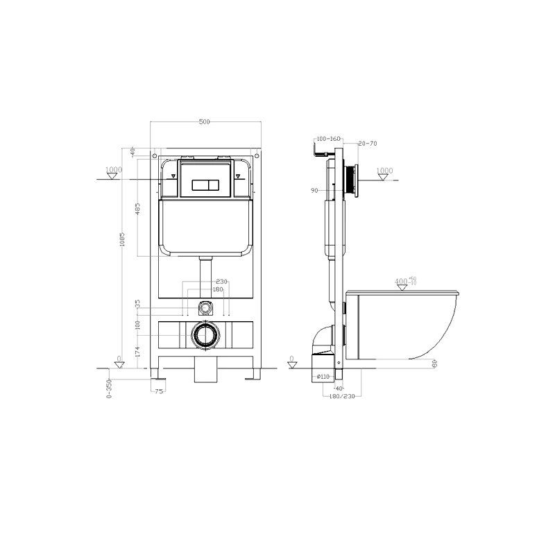 Комплект 3 в 1 Унитаз подвесной Seramiksan Petite A101002H + Сиденье AG50006, с микролифтом + Инсталляция Tokito MAX 50