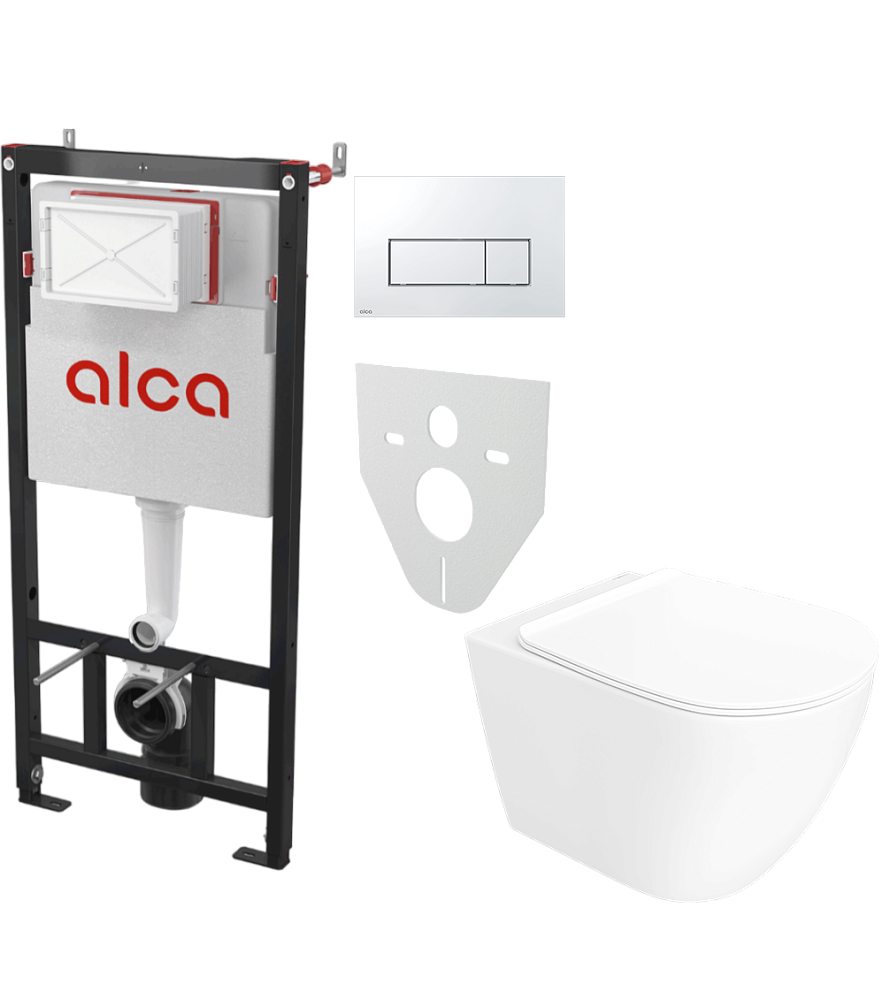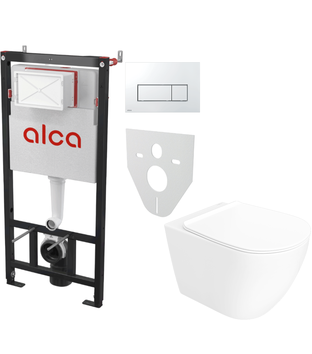 Комплект 4 в 1: Инсталляция AlcaPlast AM101/1120-4:1 RU M571-0001 + Унитаз подвесной STWORKI Готланд S13401WH + Кнопка хром глянец + Комплект шумоизоляции, креплений
