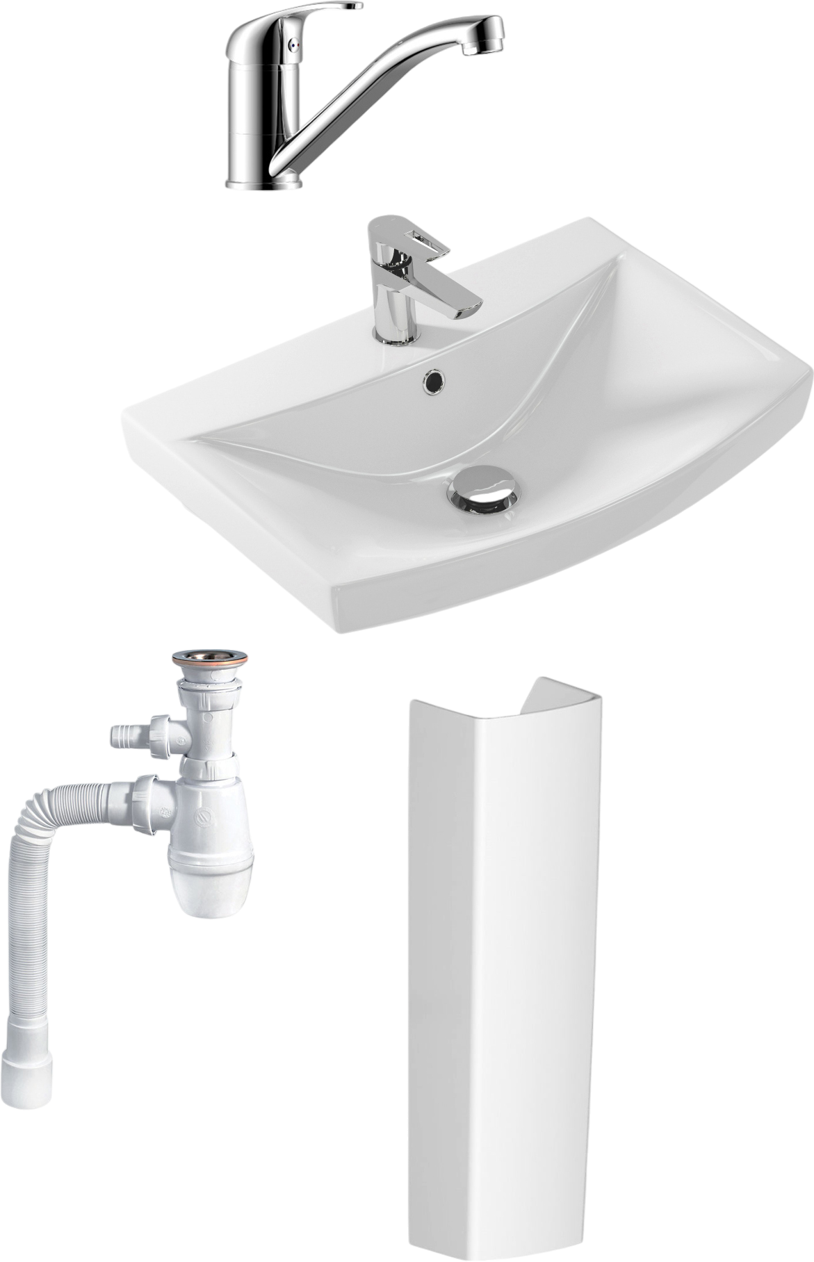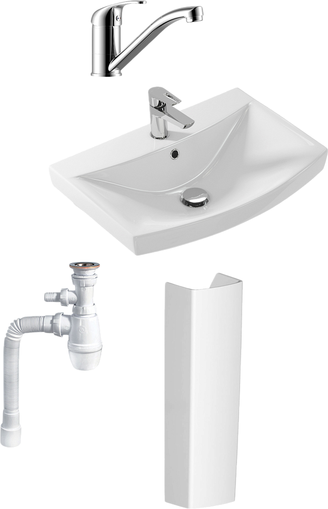 Комплект 4 в 1 Пьедестал Cersanit Карина (Carina) S-PO-CAR50/55/60-w + Смеситель Rossinka Y Y35-22 + Сифон Wirquin Минор 30718052 + Раковина S-UM-CAR60/1-w
