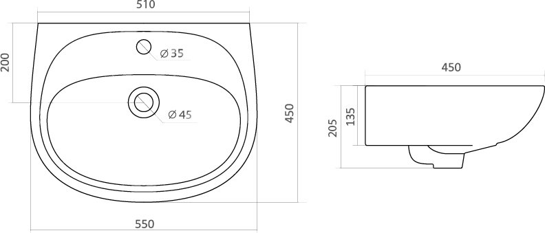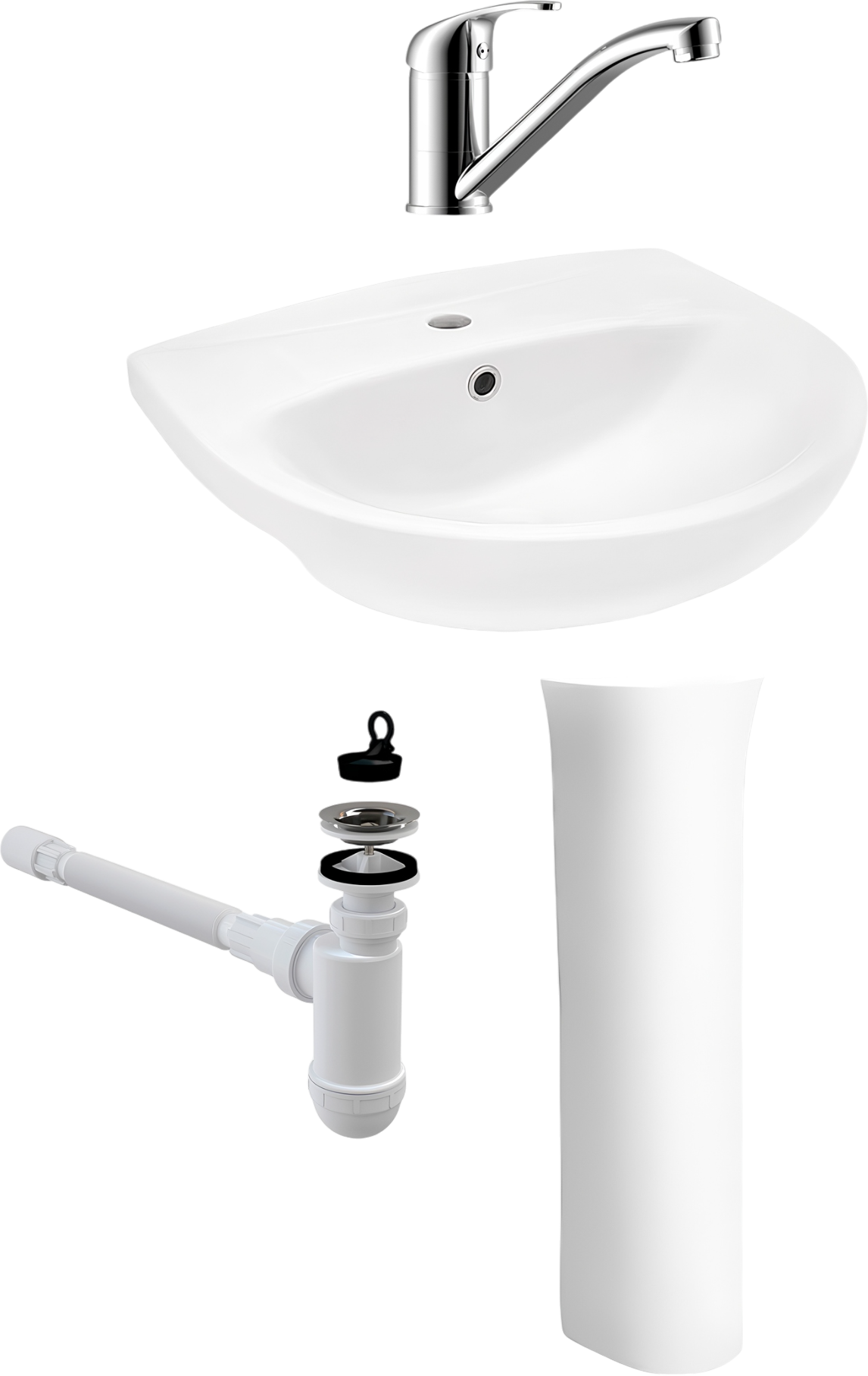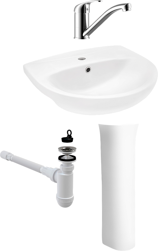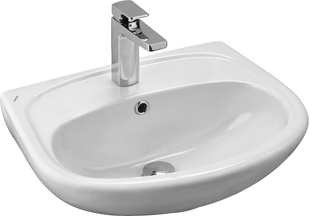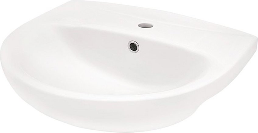 Полукруглая белая раковина Santek Анимо 55 из фаянса оснащена подвесной конструкцией и может дополнительно монтироваться на пьедестал. Предусмотрено одно отверстие для смесителя.