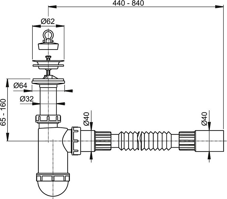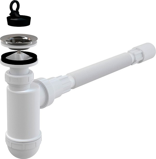 Сифон для раковины AlcaPlast A41 Flexi выполнен из качественного белого пластика. Бутылочная конструкция препятствует проникновению канализационных газов в помещение. Регулируется по высоте на 9,5 см. Высота 13 см, длина 84 см. В комплекте пробка на цепочке.