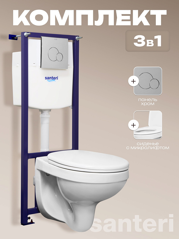 Отзывы о Комплект 4 в 1 Santeri Альфа Комфорт кнопка хром, с сидением с микролифтом