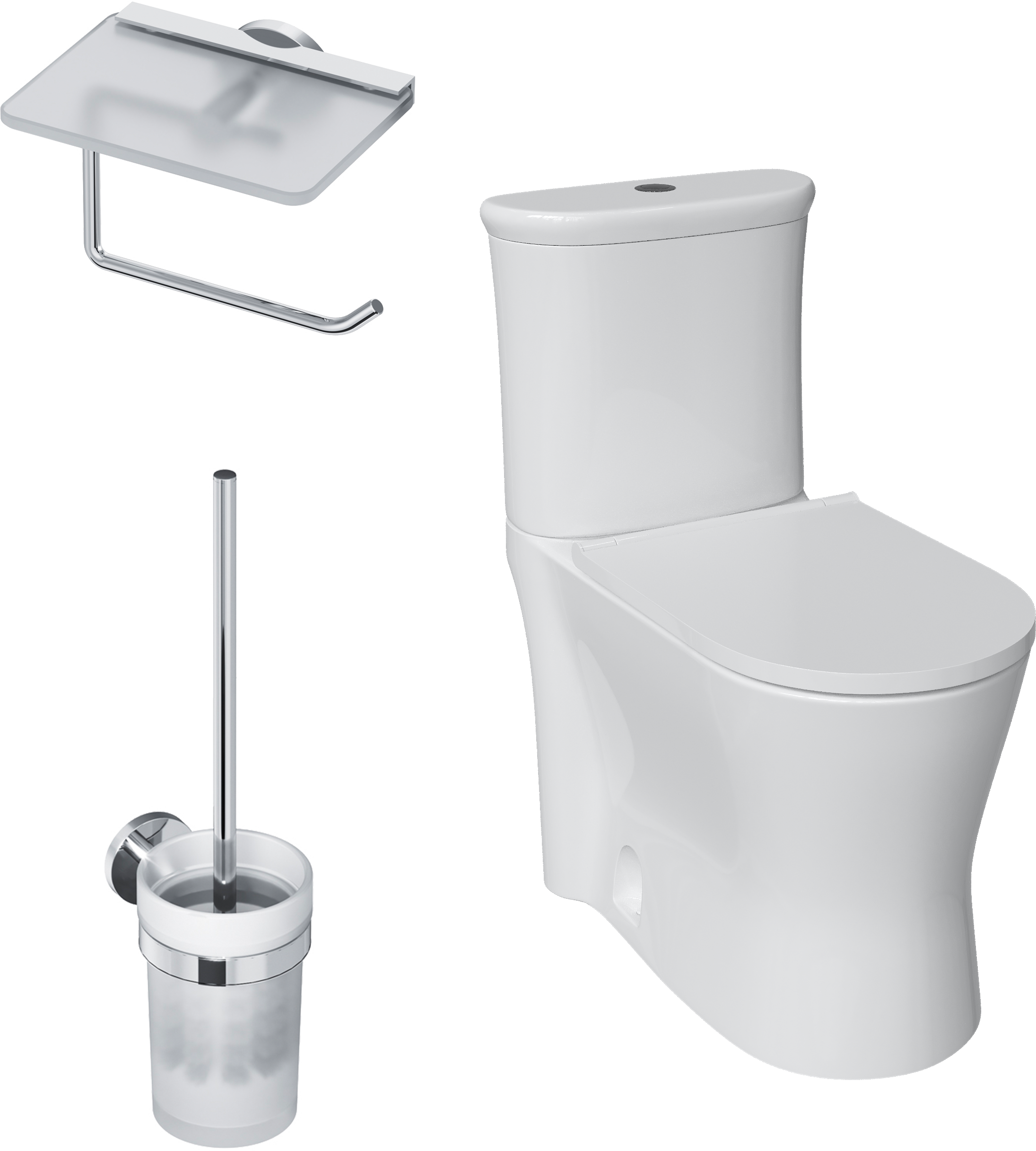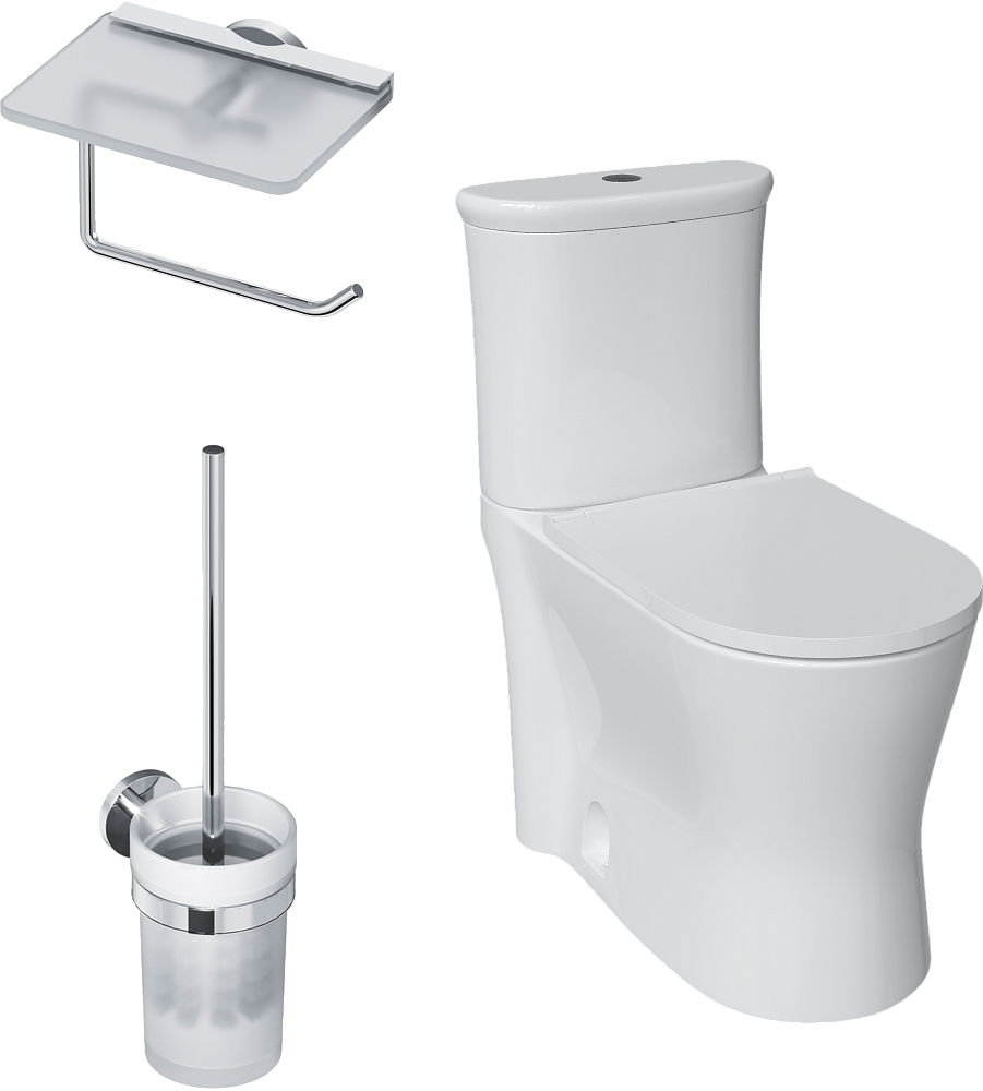 Комплект 4 в 1 Унитаз-компакт DIWO Кострома 0422 крышка белая с микролифтом + Бачок 0422 + Держатель AM.PM X-Joy A85A341500 с полкой для телефона, хром + Ершик A85A33300 хром