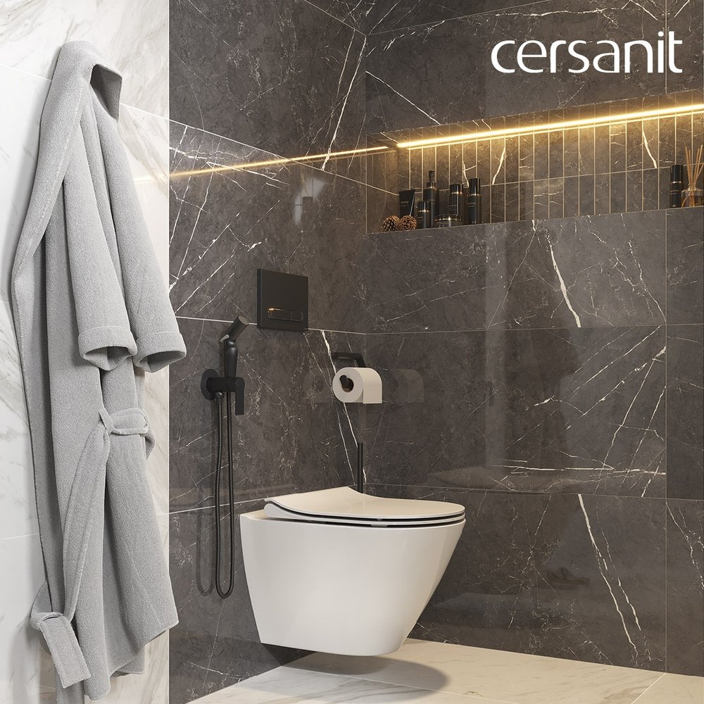 Отзывы о Комплект 5 в 1 Cersanit Город (City) 69324 кнопка смыва черная матовая с рамкой хром, микролифт