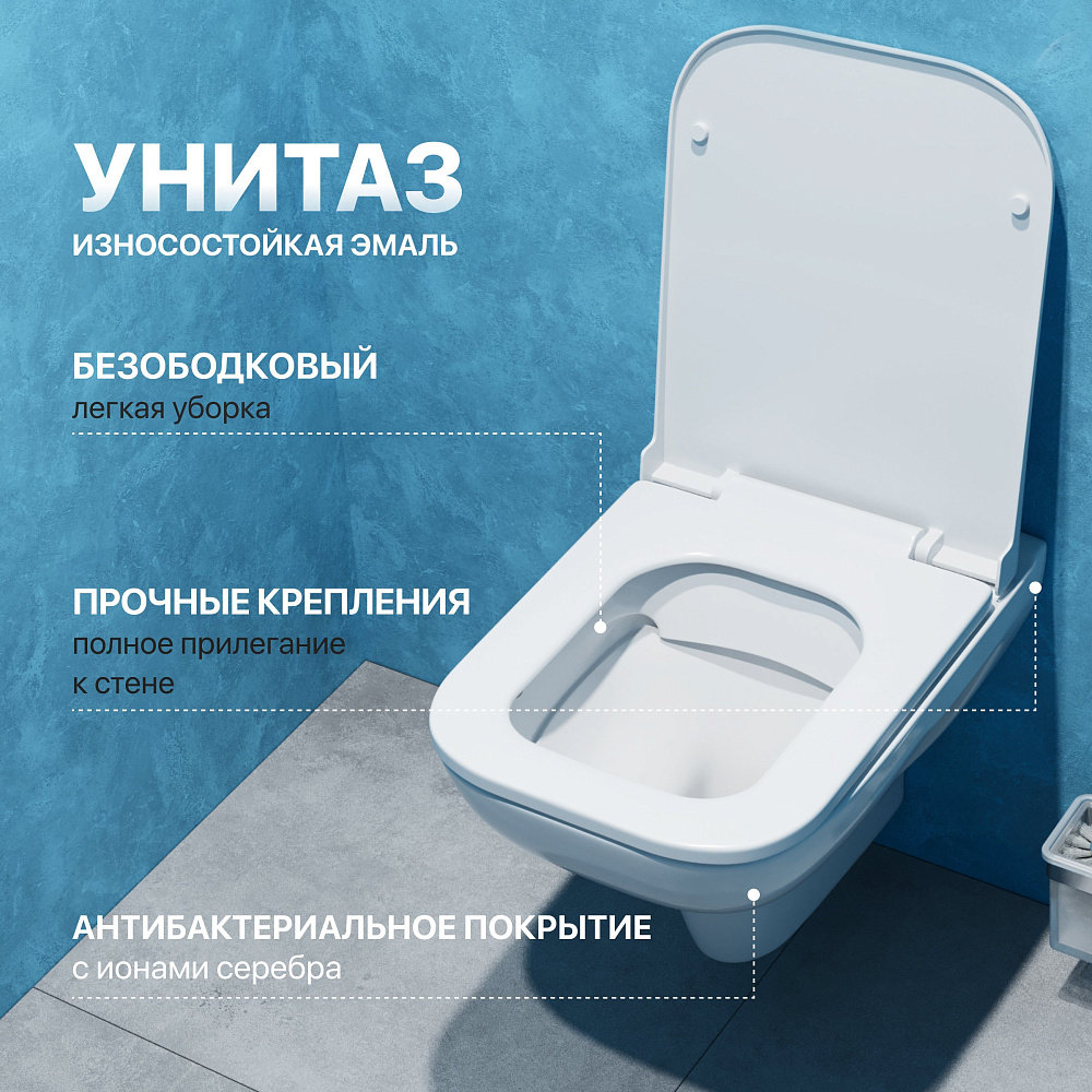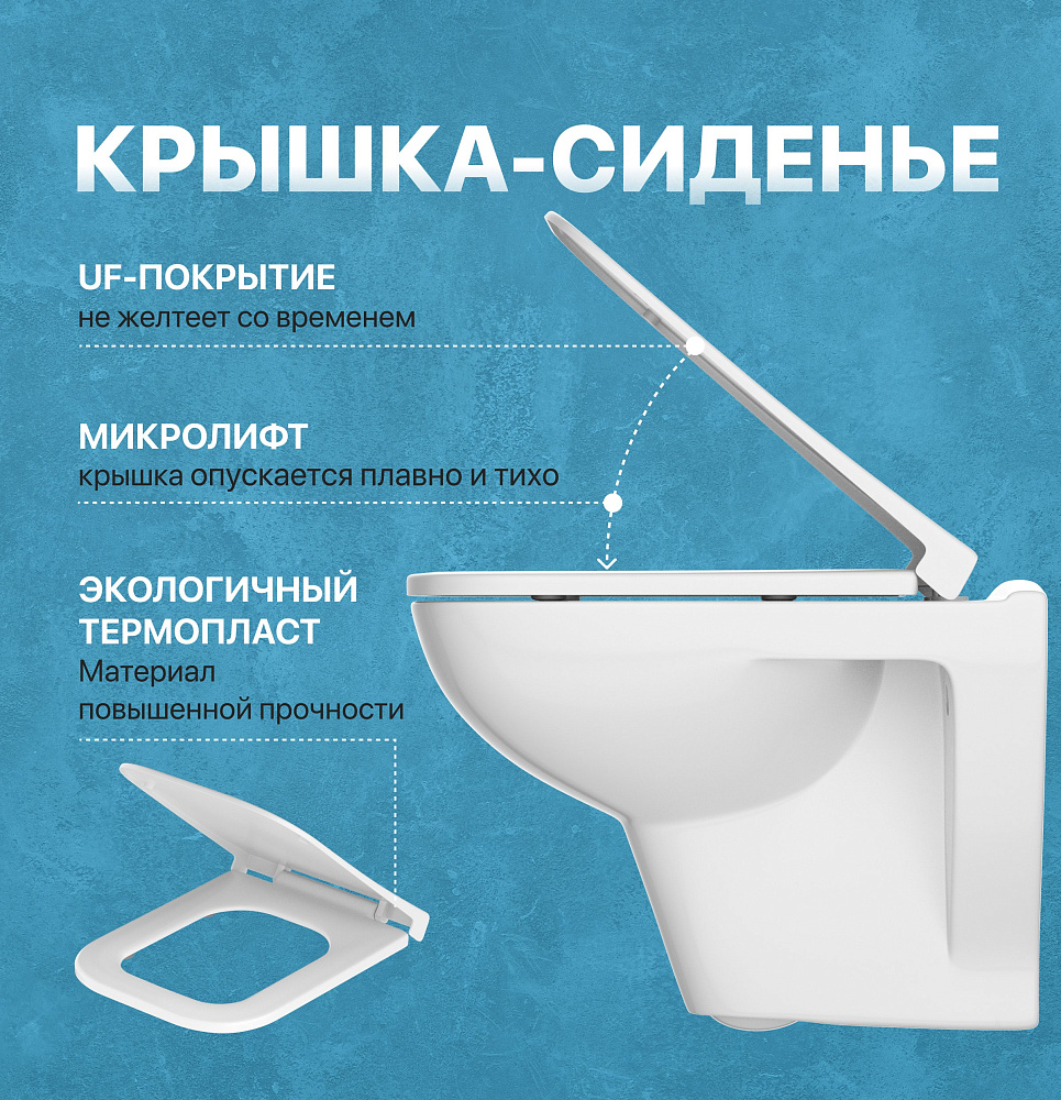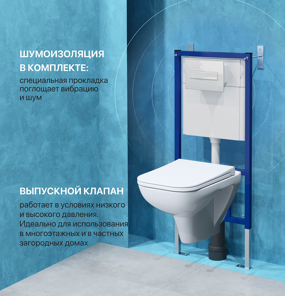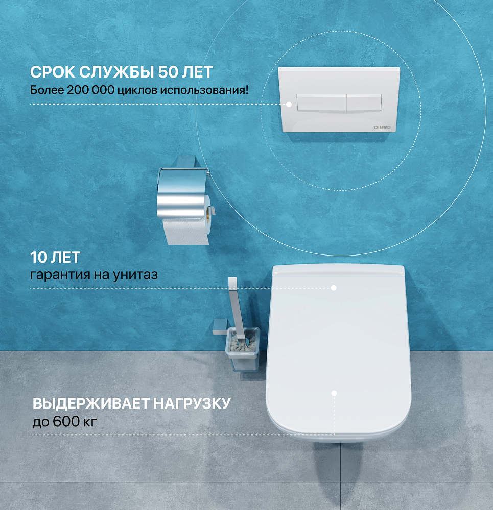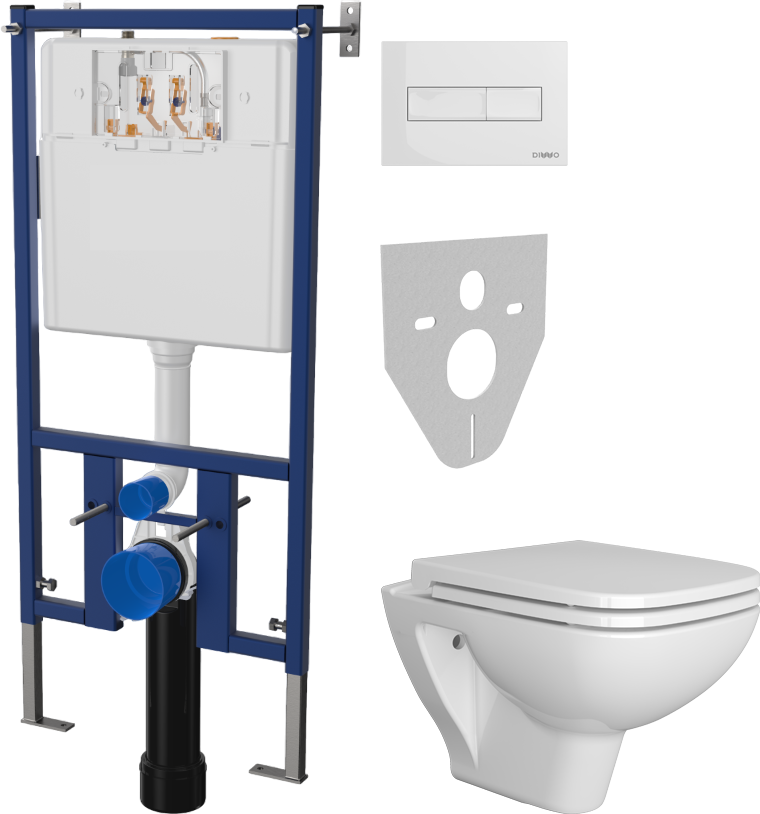 Комплект 4 в 1 Унитаз подвесной DIWO Сочи 7508N003-0079 безободковый + Сиденье Yakut 0344 быстросъемное, с микролифтом + Инсталляция 4501 + Кнопка 7320 цвет глянцевый белый