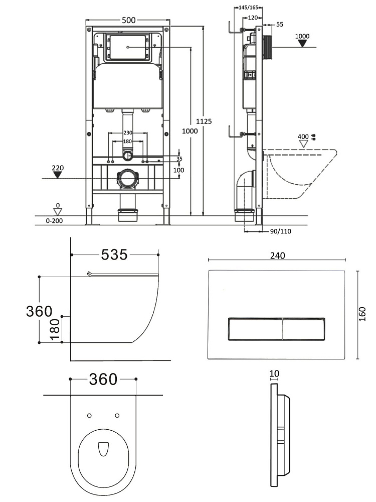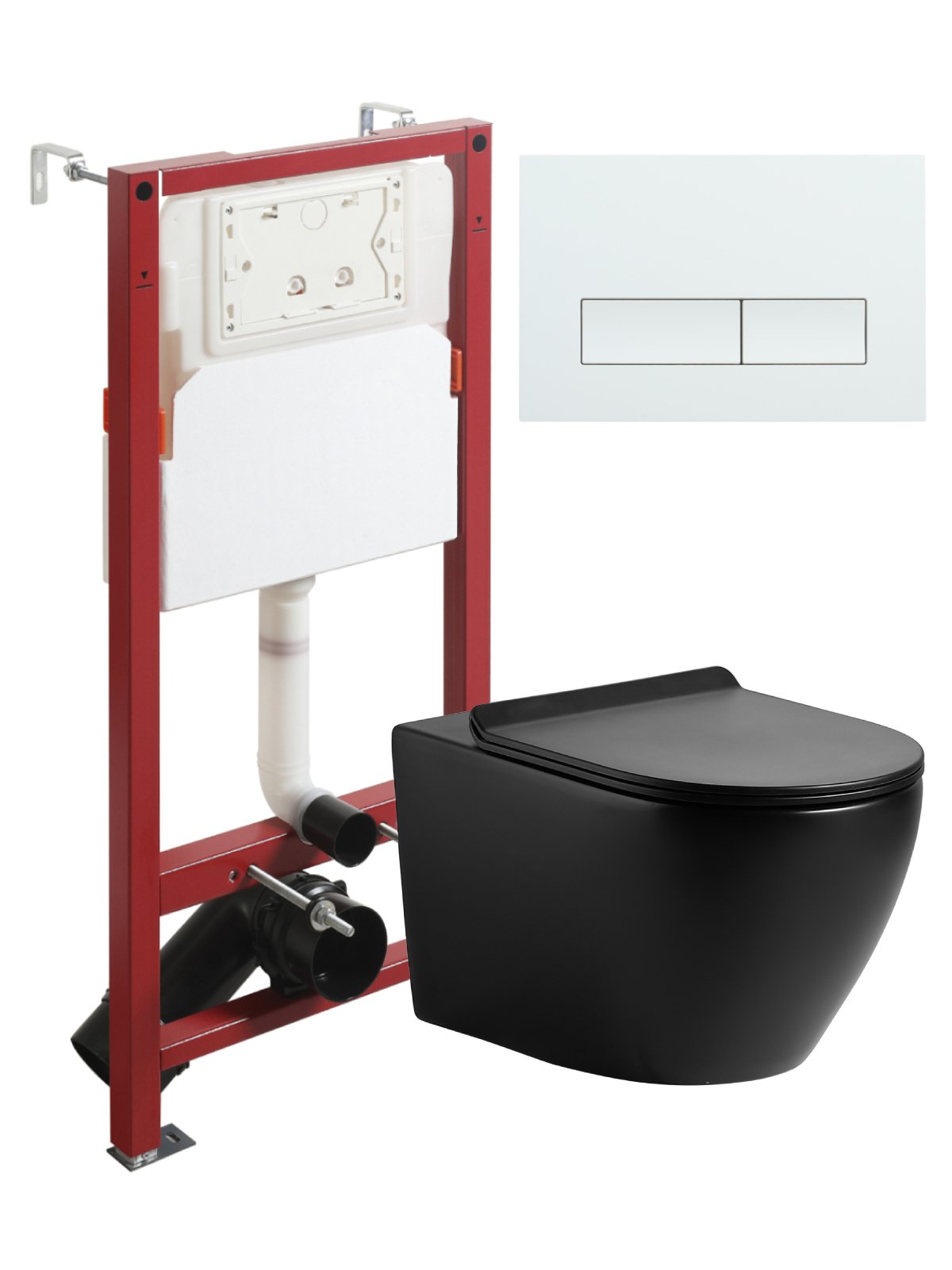 Комплект Agger ATI03144+APB288 Унитаз подвесной безободковый, с микролифтом + Система инсталляции + Кнопка смыва белая