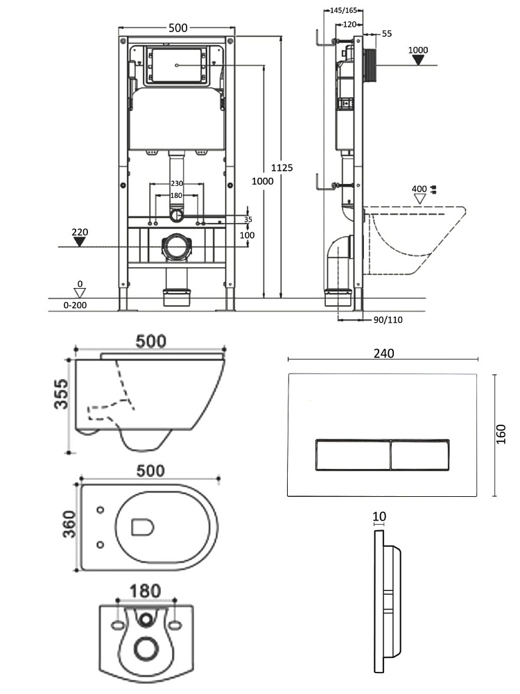 Комплект Agger ATI05100+APB288 Унитаз подвесной безободковый, с микролифтом + Система инсталляции + Кнопка смыва белая