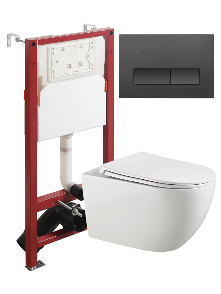 Комплект Agger ATI12150+APB244 Унитаз подвесной, безободковый, с микролифтом + инсталляция + кнопка черная