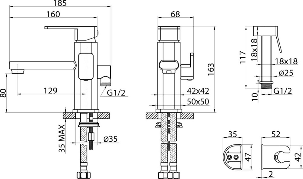 душевой шланг / настенный держатель / лейка гигиенического душа