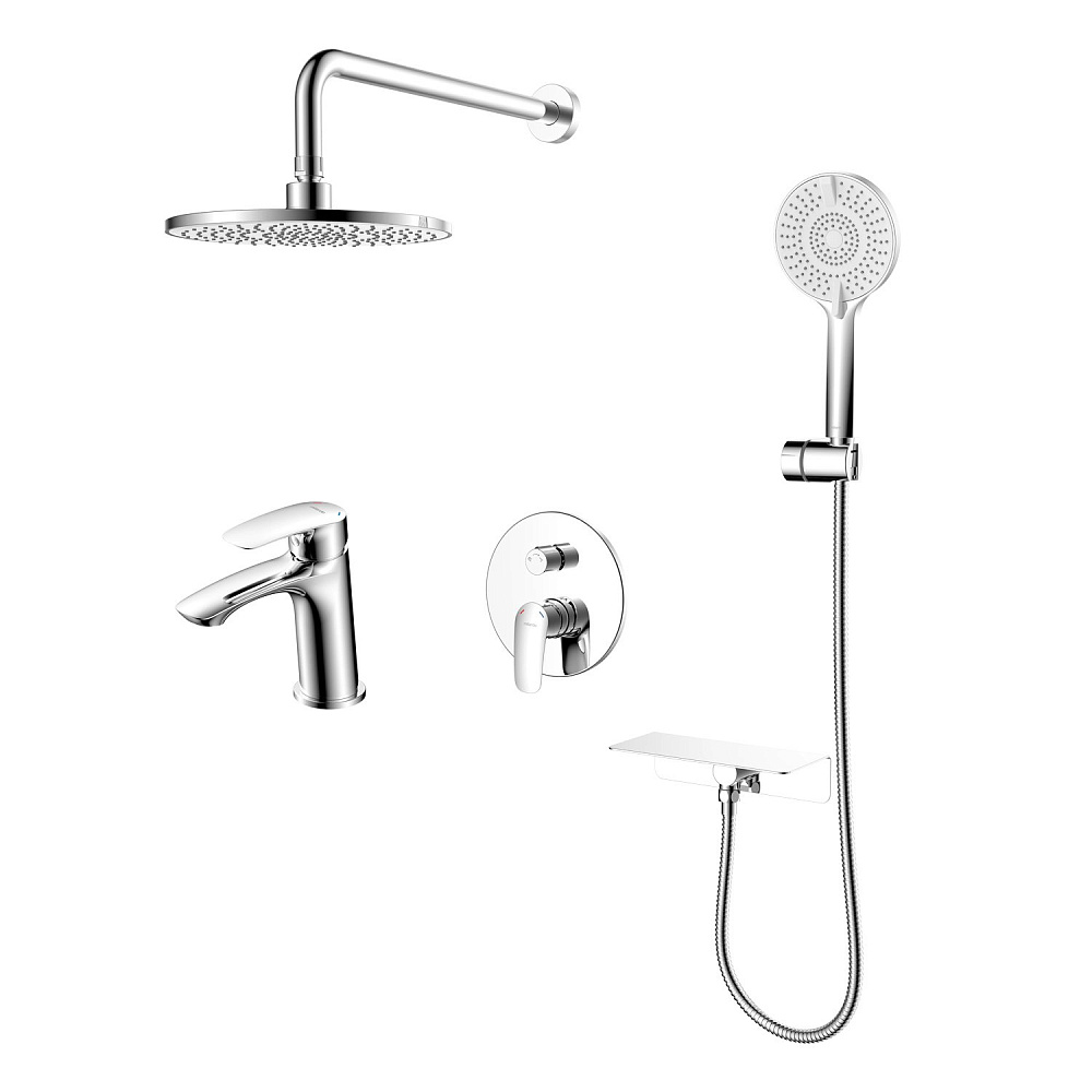 Душевая система Rora на три выхода предназначена для подключения трех точек водопотребления и подходит для установки как в зоне с ванной, так и душевой зоне. Завершает комплект смеситель для умывальника.