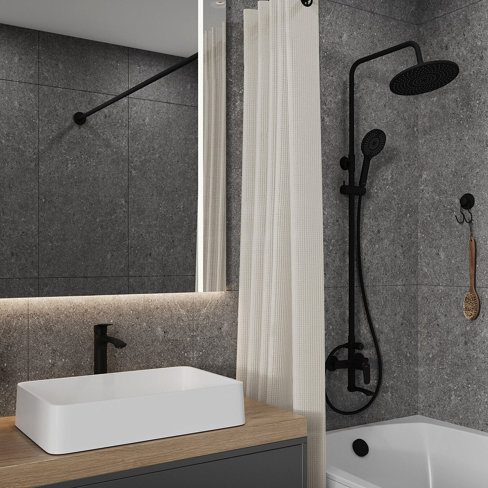 Душевая система Rora отличается не только тропическим душем, но и четырьмя режимами ручной лейки, включая многофункциональный моноструйный режим, который подходит как для массажа, так и для уборки ванной. Завершает комплект высокий смеситель для умывальника, который отлично сочетается с накладными раковинами-чашами.