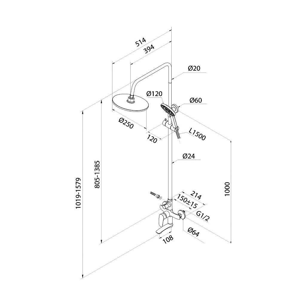 • Душевую систему можно сделать еще удобнее, подстроив под личные предпочтения: изменить высоту и угол наклона верхней лейки, режимы работы душевой лейки.