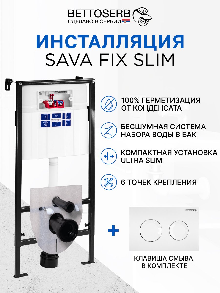 Комплект Инсталляция BETTOSERB Sava Fix Slim 40006456 + Кнопка Cool 40006466 цвет белый глянец
