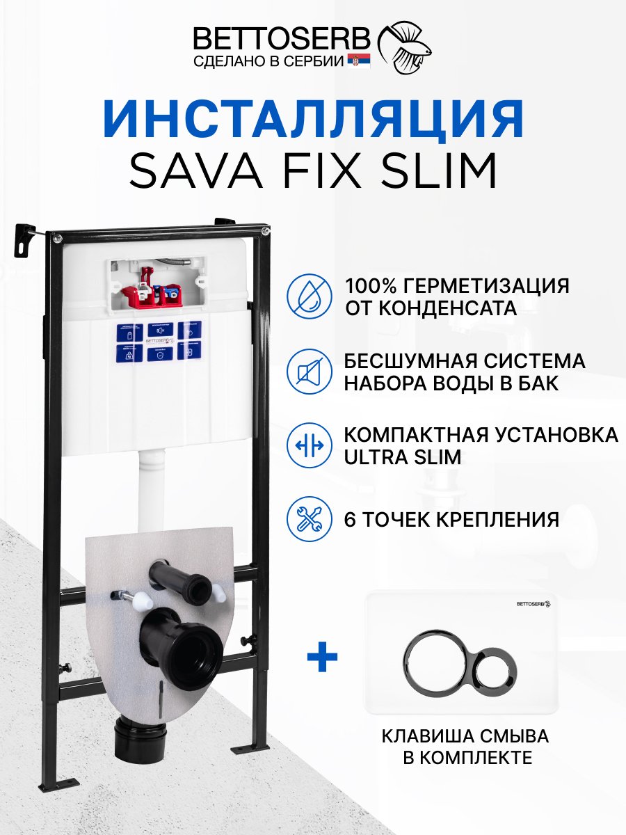 Комплект Инсталляция BETTOSERB Sava Fix Slim 40006456 + Кнопка Duo 40006458 цвет белый глянец, глянцевый хром