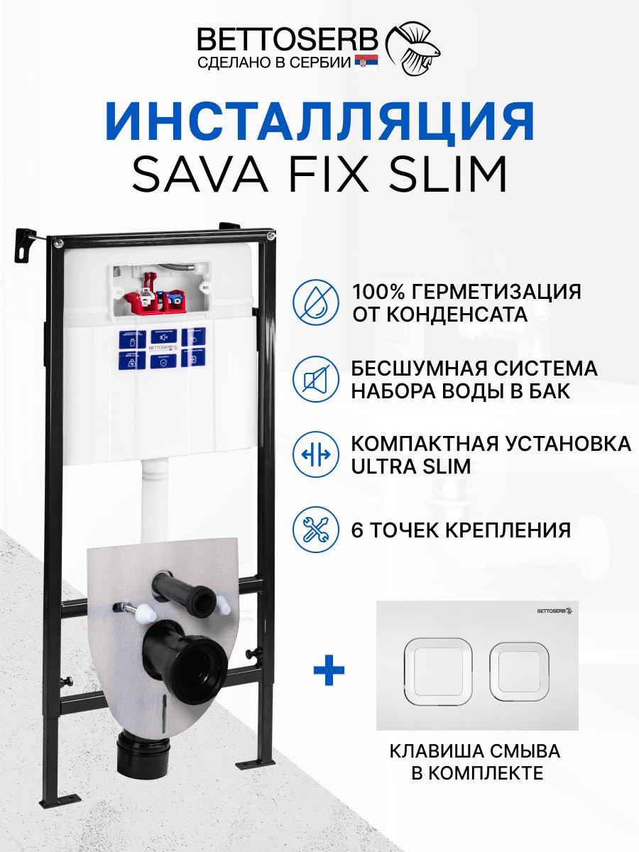 Комплект Инсталляция BETTOSERB Sava Fix Slim 40006456 + Кнопка Smart 40006470 цвет белый глянец