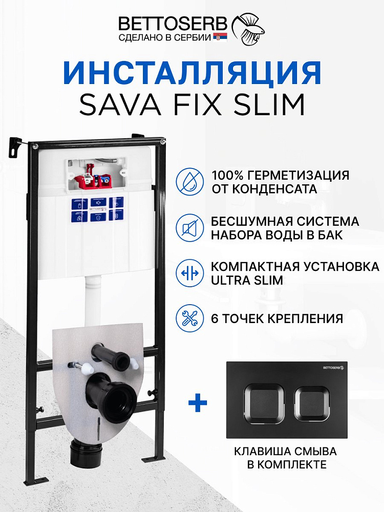 Комплект Инсталляция BETTOSERB Sava Fix Slim 40006456 + Кнопка Smart 40006471 цвет матовый черный