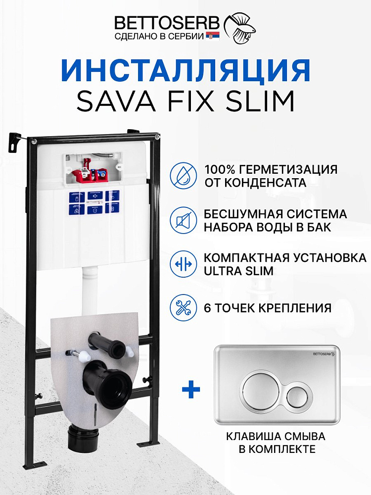Комплект Инсталляция BETTOSERB Sava Fix Slim 40006456 + Кнопка Twin 40006462 цвет матовый хром