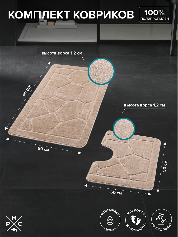 Отзывы о Комплект ковриков РМС КК-02БЖ 100х60, 50x60, бежевый