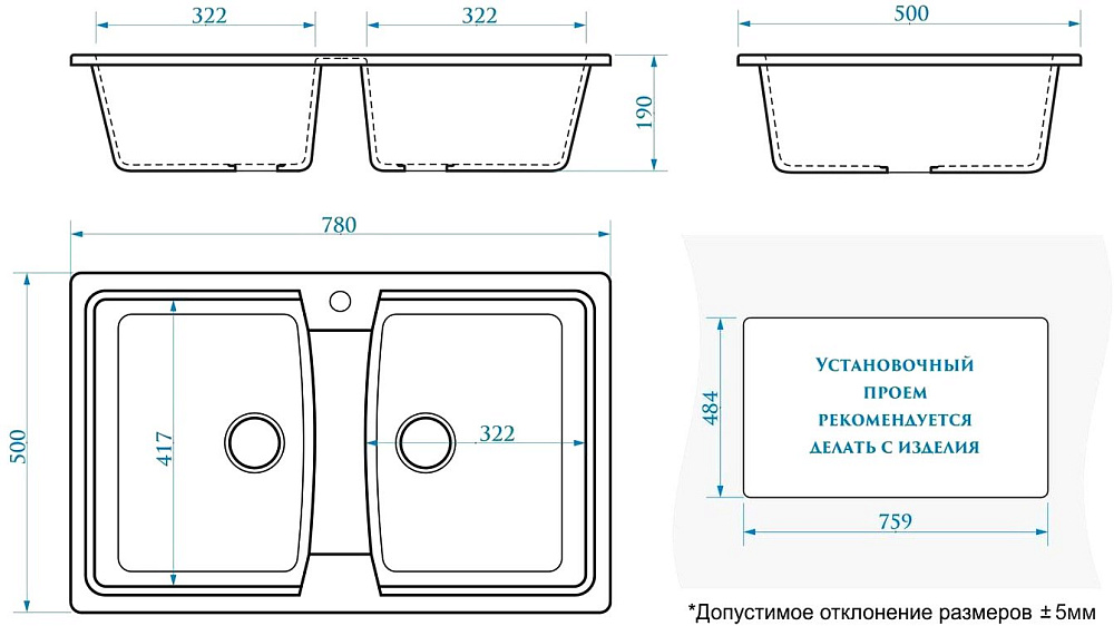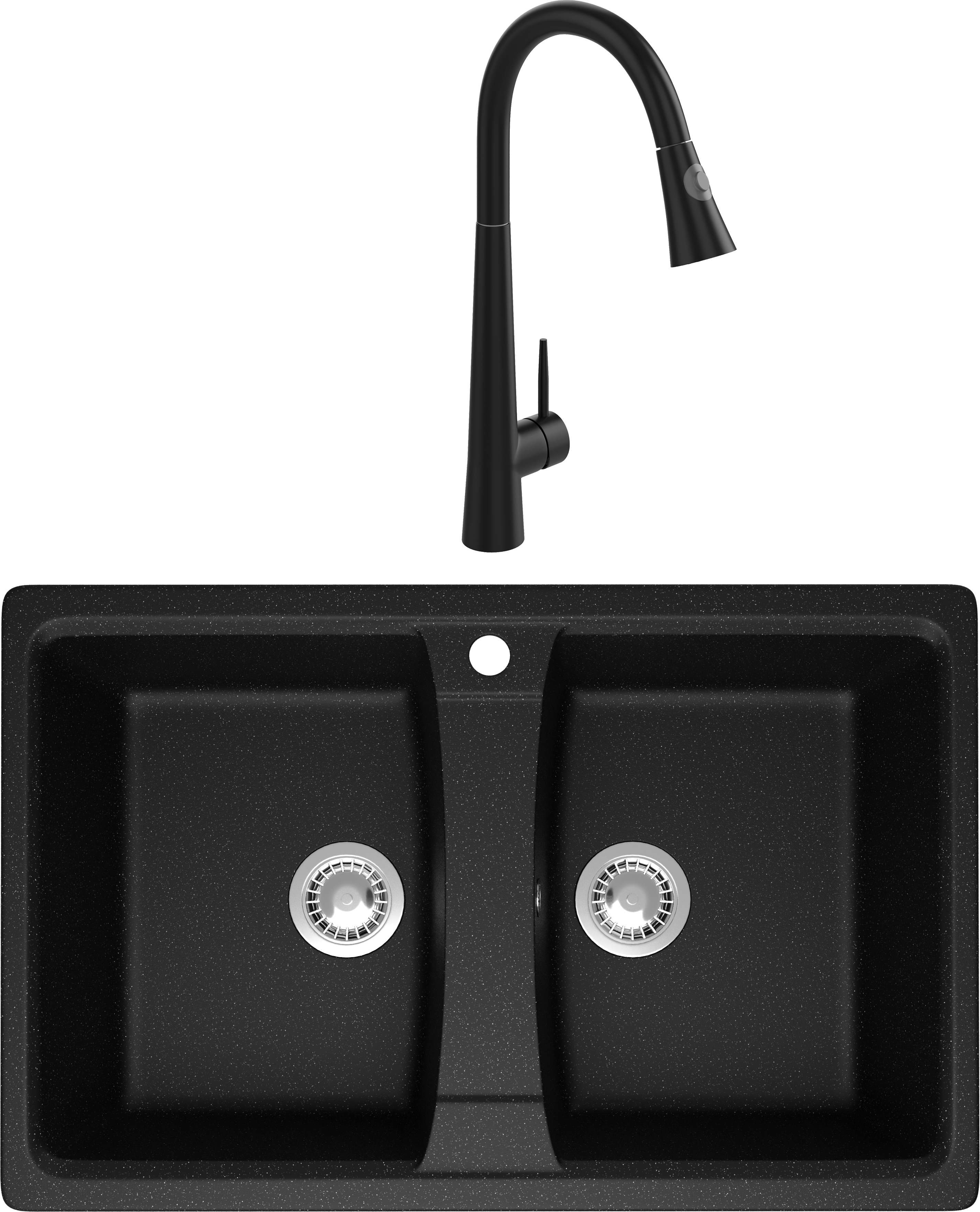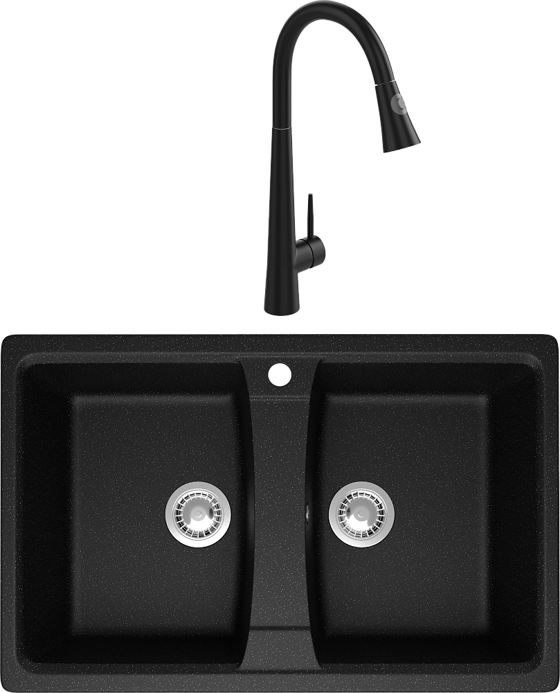 Комплект Мойка Domaci Болонья М-26-002, черная + Смеситель Ливорно WFD04098, черный