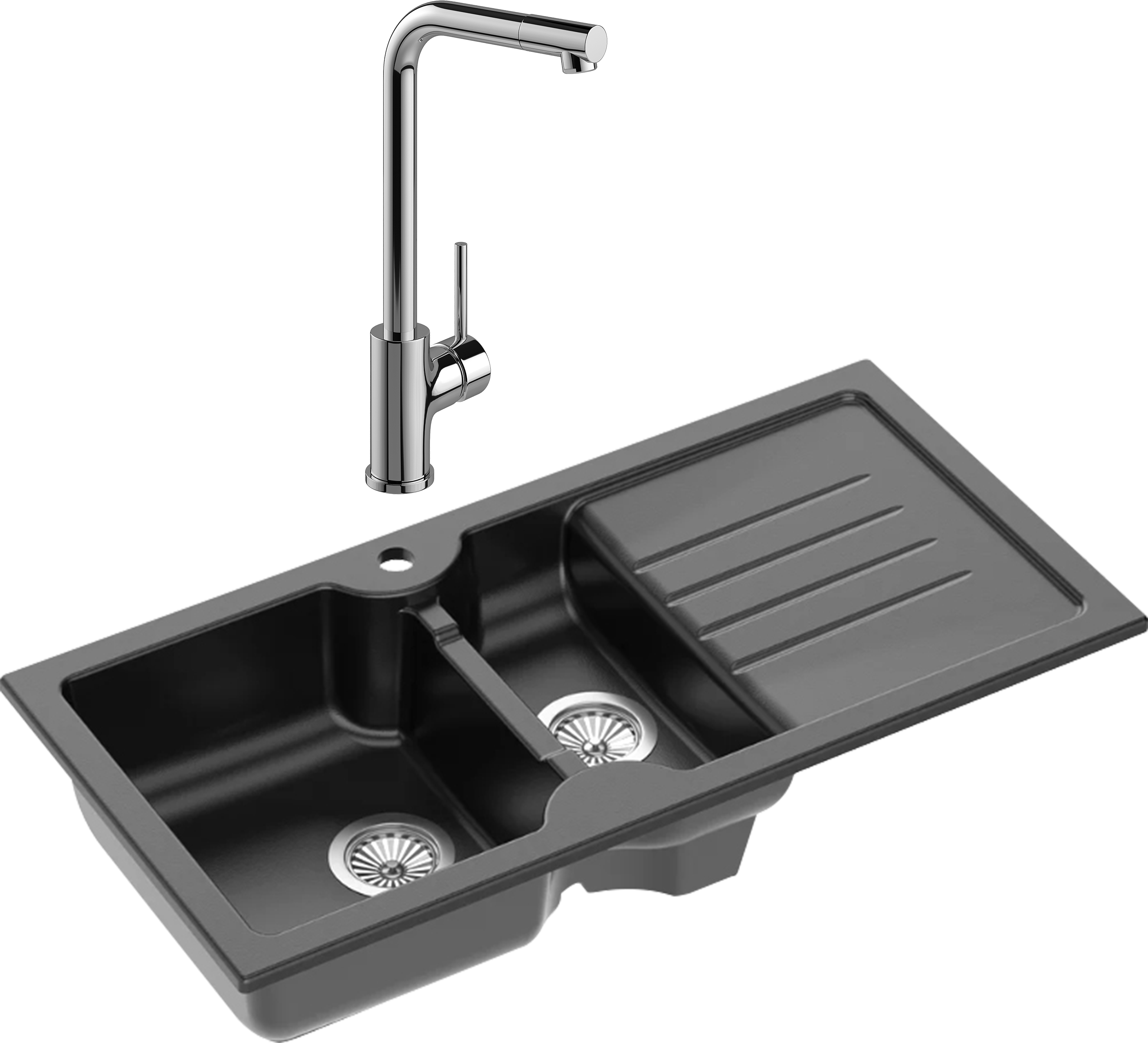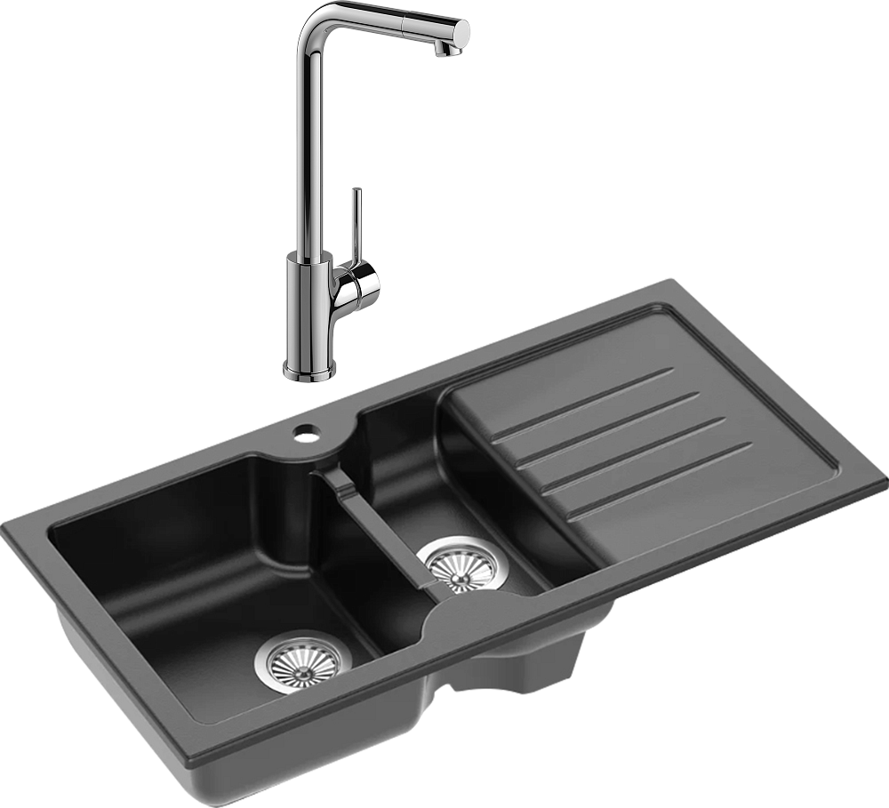 Комплект Мойка Domaci Сиена 54100-110, черная матовая + Смеситель Ливорно