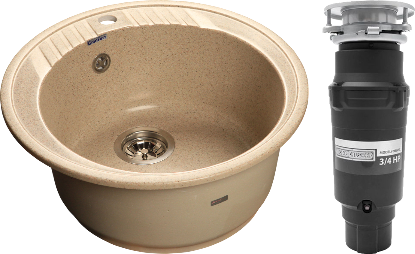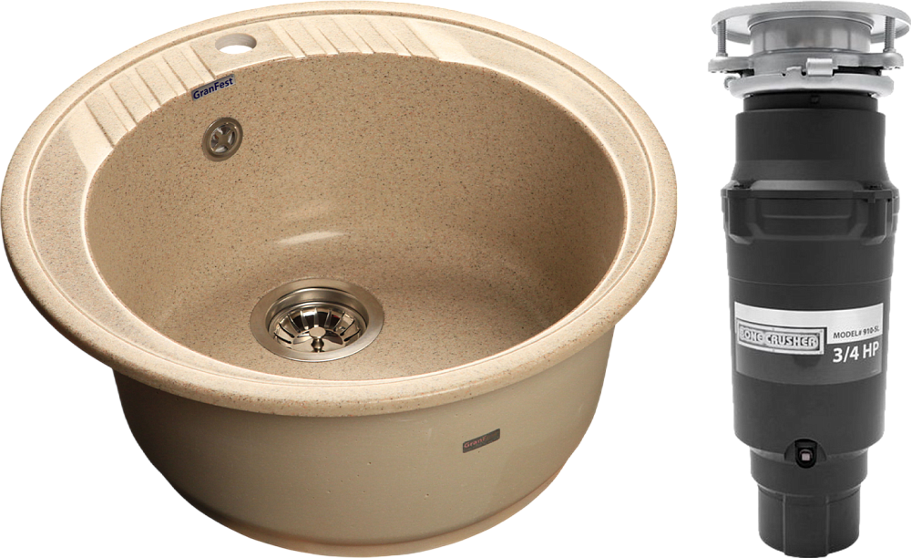 Комплект Мойка GranFest Rondo GF-R520, песочный + Измельчитель Bone Crusher BC 910-SL-Slim Line