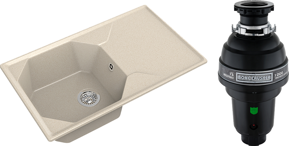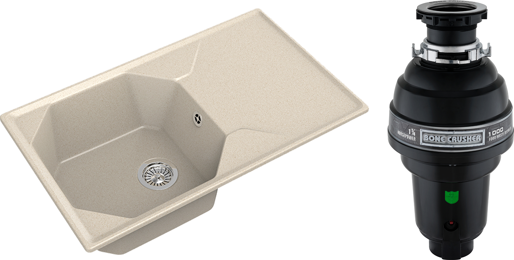 Комплект Мойка GranFest Unique U-840L, бежевая + Измельчитель Bone Crusher BC 1000-AS