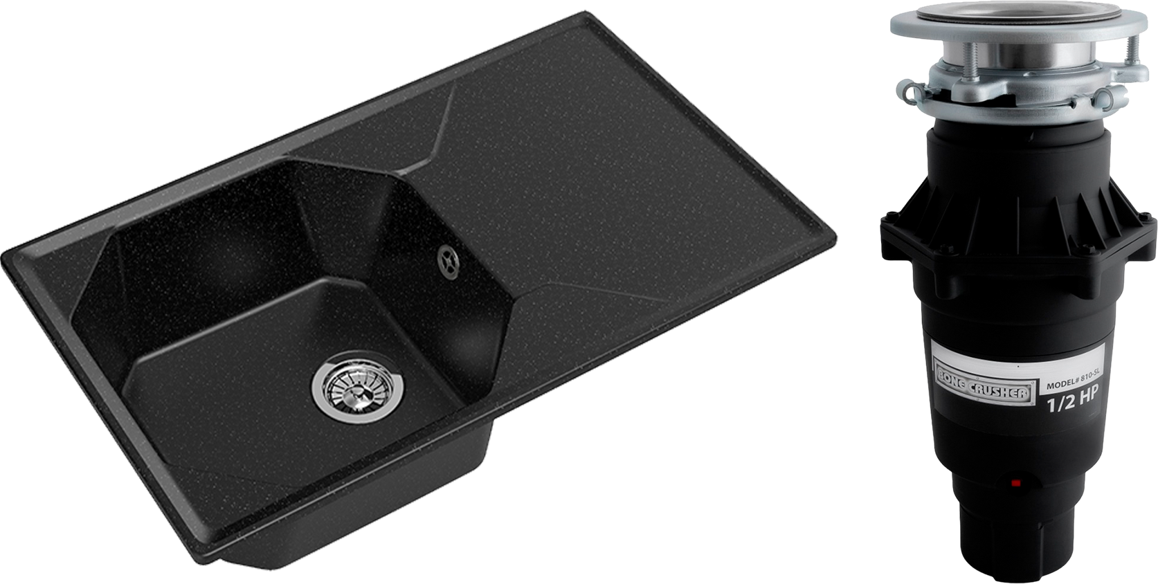 Комплект Мойка GranFest Unique U-840L, черная + Измельчитель Bone Crusher BC 810-SL Slim Line