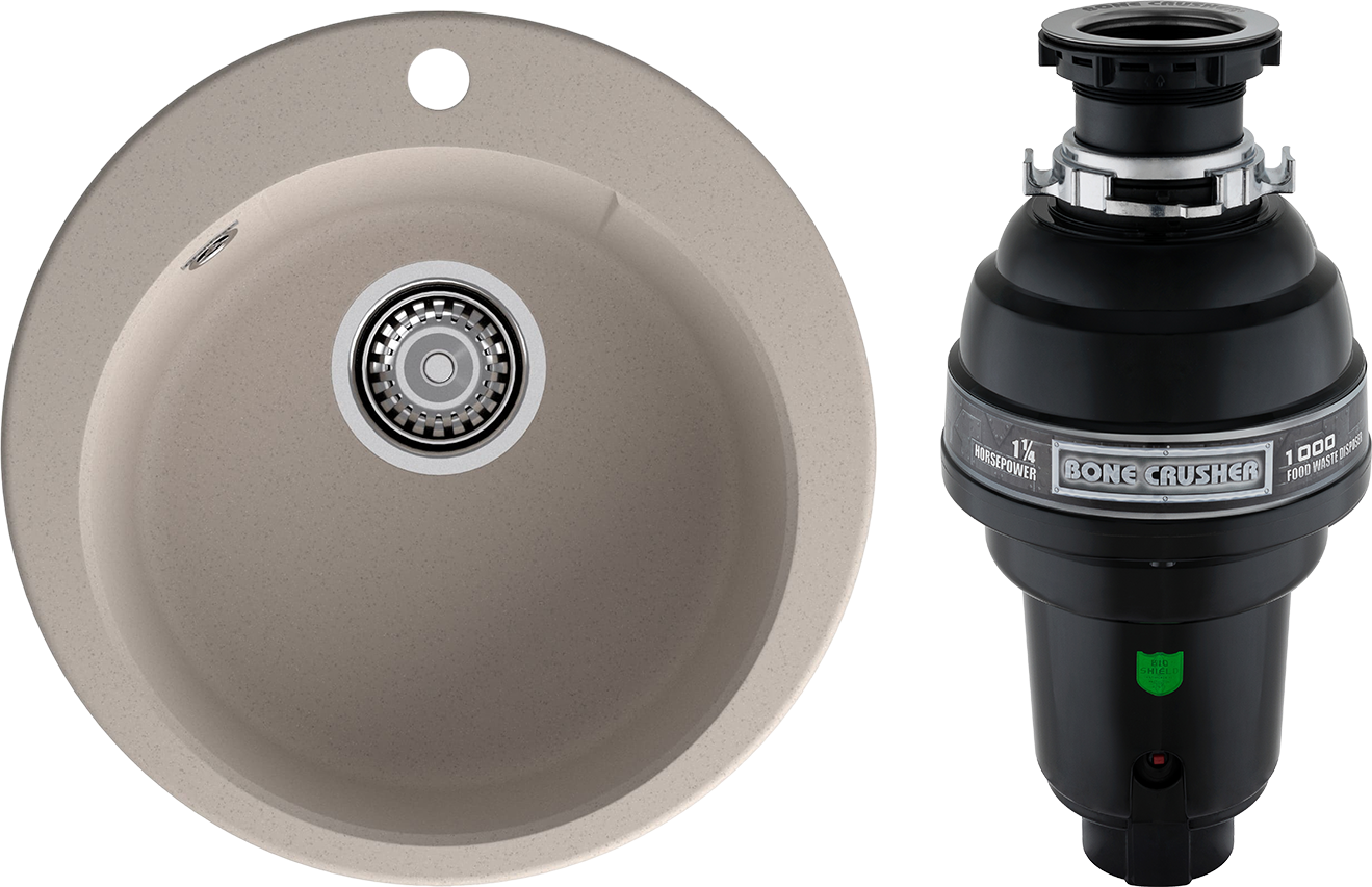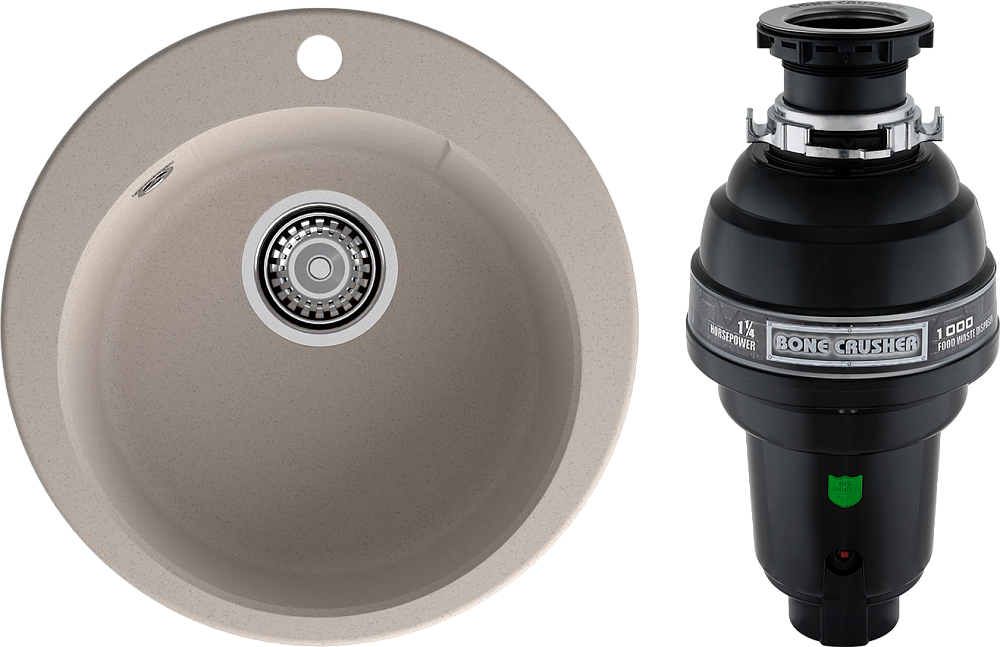 Комплект Мойка GranFest Urban 649, песочная + Измельчитель Bone Crusher BC 1000-AS