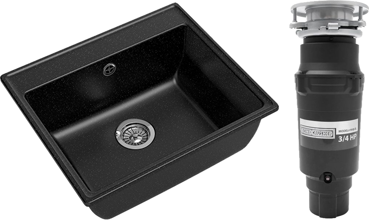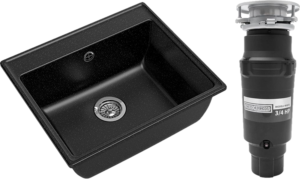 Комплект Мойка GranFest Vertex GF-V-580, черная + Измельчитель Bone Crusher BC 910-SL-Slim Line