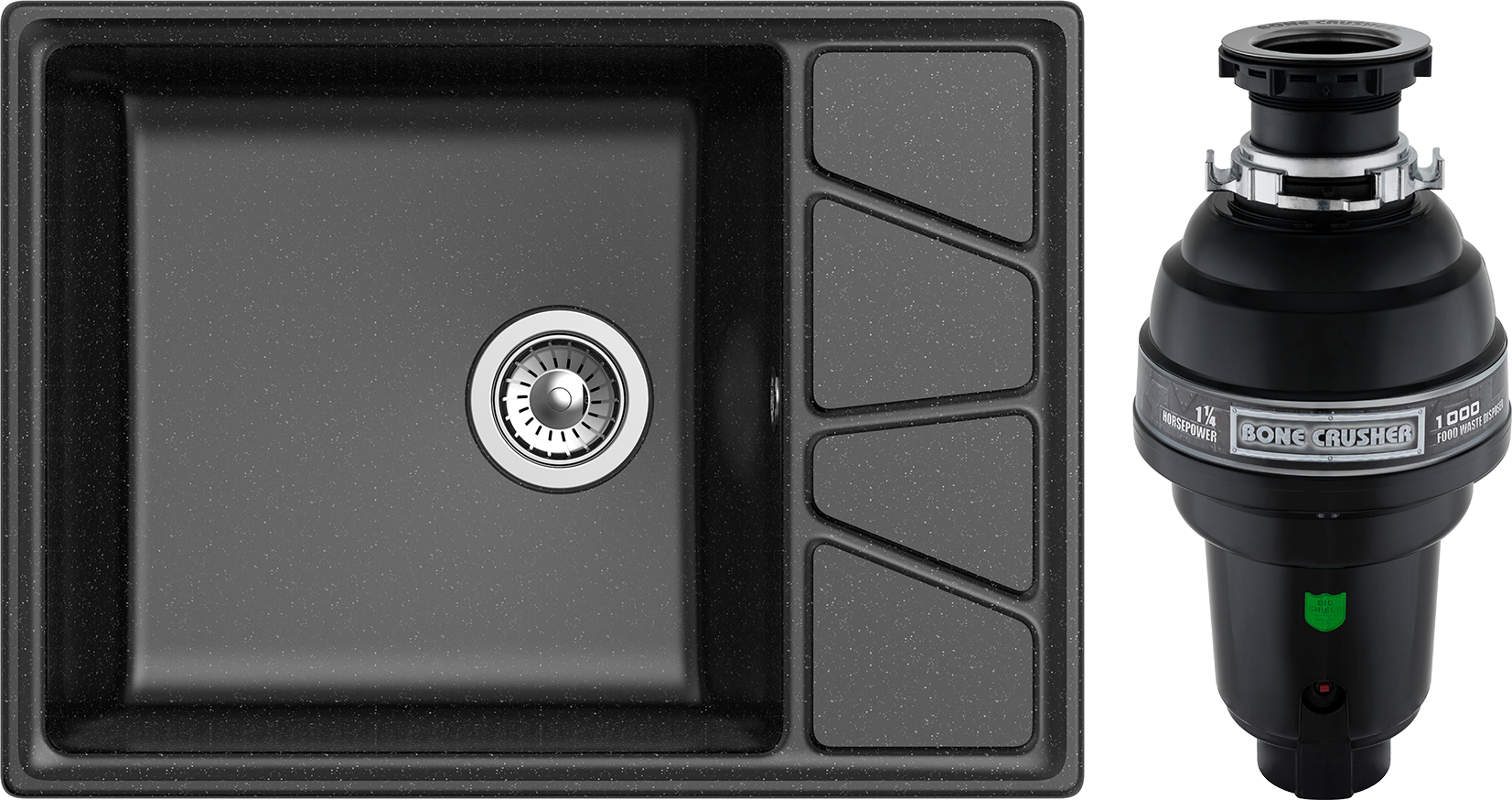 Комплект Мойка GranFest Vertex GF-V-680L, черная + Измельчитель Bone Crusher BC 1000-AS