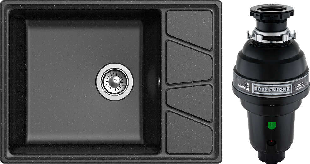 Отзывы о Комплект Мойка GranFest Vertex GF-V-680L, черная + Измельчитель Bone Crusher BC 1000-AS