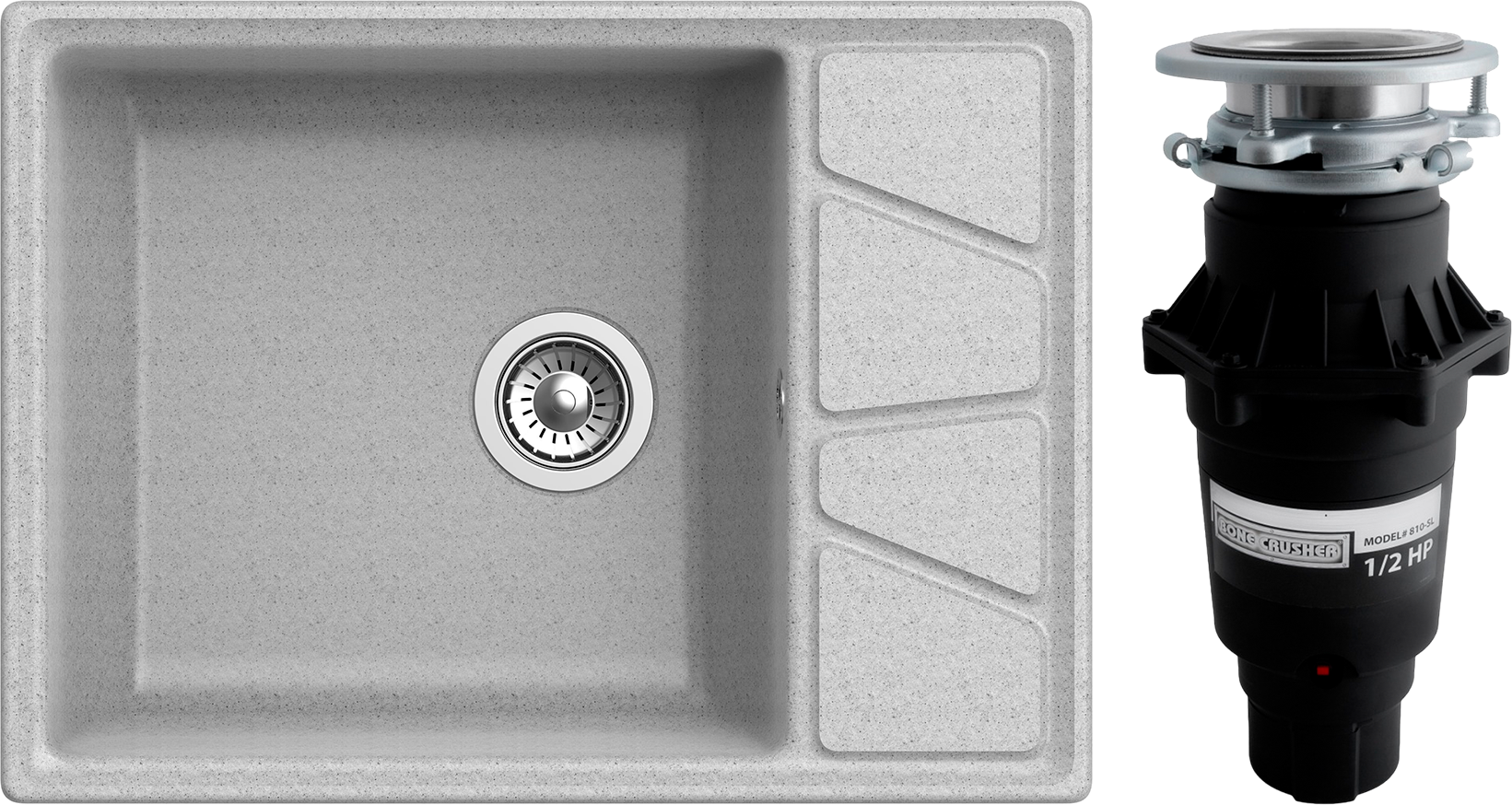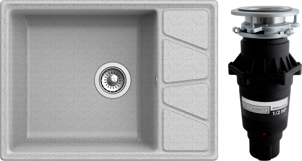 Комплект Мойка GranFest Vertex GF-V-680L, серая + Измельчитель Bone Crusher BC 810-SL Slim Line