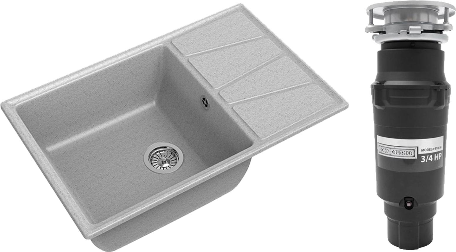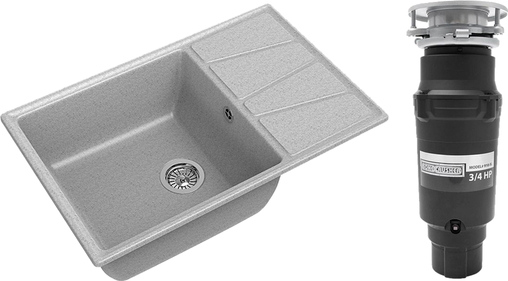 Комплект Мойка GranFest Vertex GF-V-780L, серая + Измельчитель Bone Crusher BC 910-SL-Slim Line