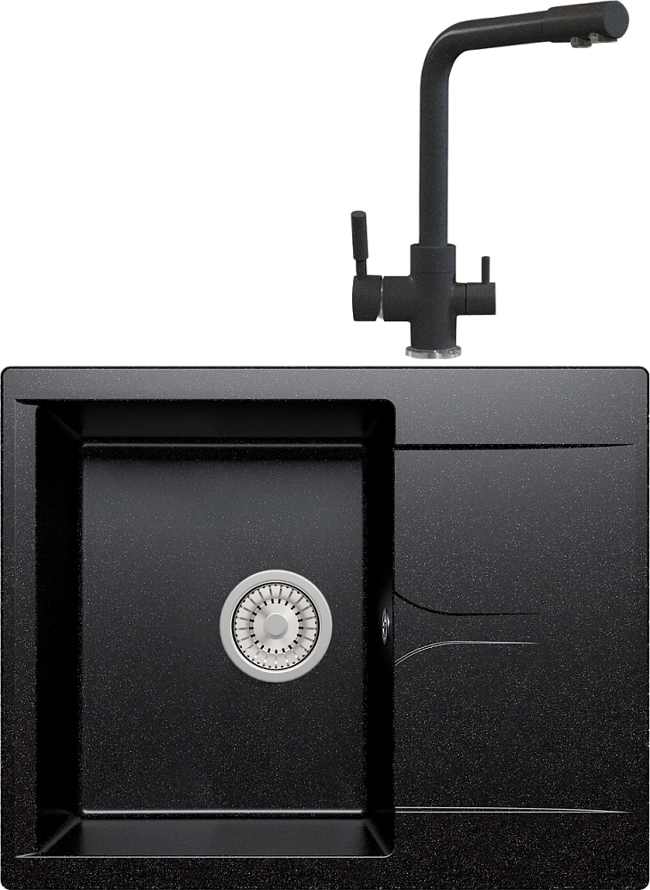 Комплект Мойка Polygran Gals 620, черная + Смеситель Высокий Дуо 627505, черный