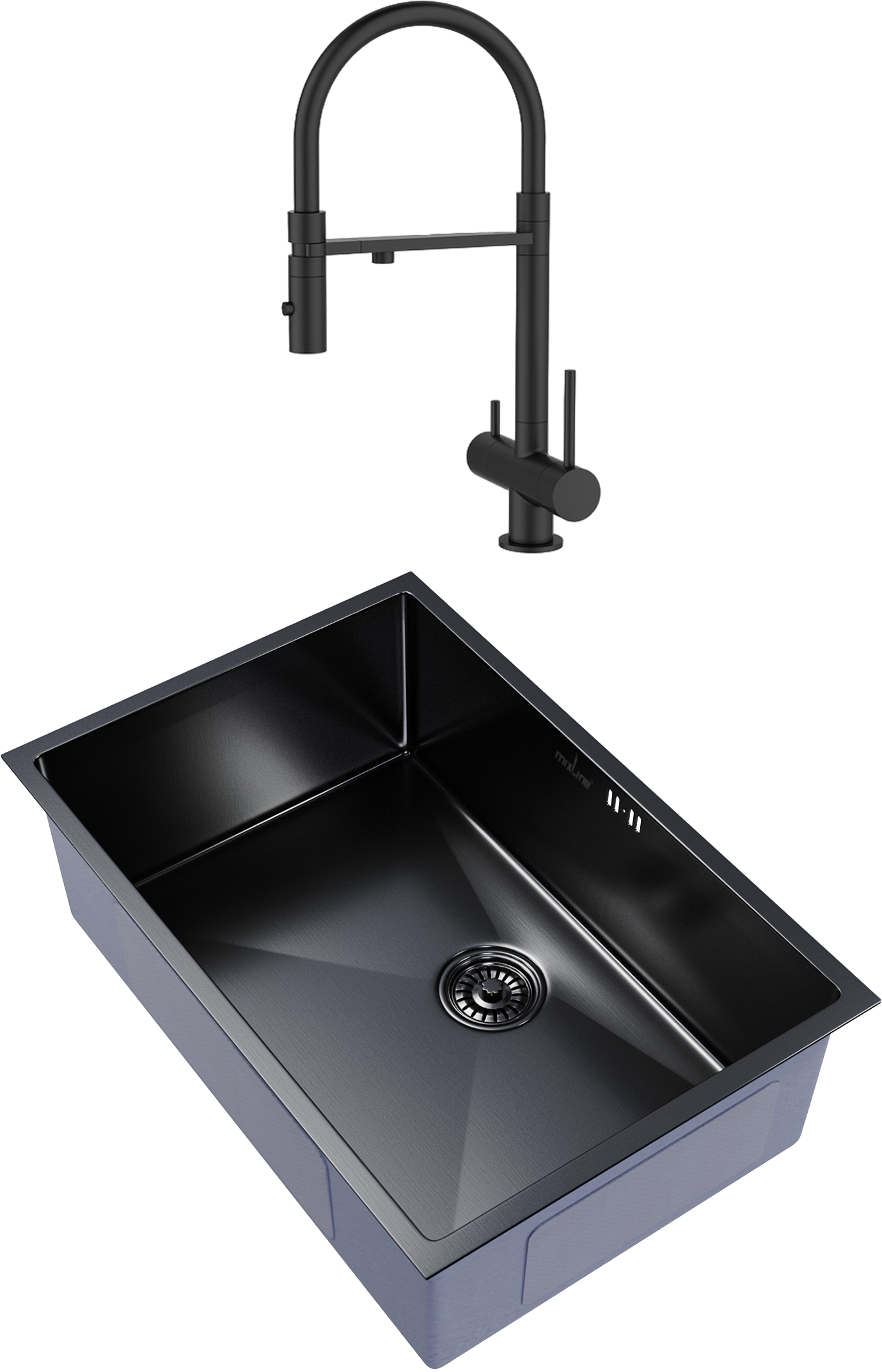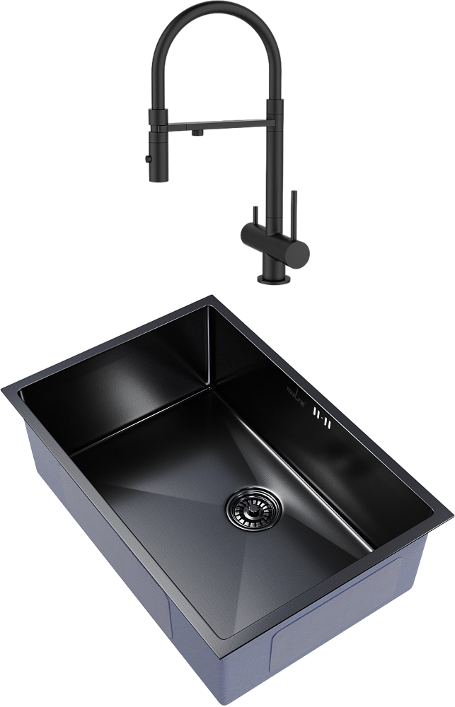 Комплект Мойка Mixline 548573 чёрный графит + Смеситель IDDIS Ace ACEBLFFi05 чёрный матовый, с гибким изливом — это стильное и практичное решение для вашей кухни. Мойка изготовлена из качественной нержавеющей стали, которая обладает отличными прочностными свойствами, устойчива к окислению и повышенной температуре. Благодаря сварному способу изготовления, мойка имеет увеличенную глубину чаши и более чёткие грани. Плоский кант не выступает на поверхности столешницы, что придаёт аккуратный и эстетичный вид всей зоне мойки.Уникальное PVD-покрытие защищает мойку от кислотосодержащих составов и механических повреждений. Царапины не оставят явного визуального следа, так как будут иметь тот же цвет, что и изделие. Поверхность с PVD-покрытием не изменится по фактуре, так как оно надёжно соединилось с кристаллической решёткой изделия.Смеситель IDDIS Ace ACEBLFFi05 выполнен из надёжного корпуса из латуни, который устойчив к коррозии, резким изменениям давления и перепадам температуры воды. Гибкий излив из термостойкого силикона легко содержать в чистоте благодаря гладкой поверхности и высокой устойчивости силикона к грибку. Материал приятен на ощупь и легко моется обычным моющим средством.В смесителе предусмотрено 2 режима подачи воды: «душ» — для ополаскивания посуды или мытья овощей и фруктов; стандартная аэрированная струя — для быстрого наполнения ёмкостей. Переключение между режимами производится простым нажатием кнопки на изливе. Этот комплект станет не только удобным, но и стильным дополнением вашей кухни, обеспечивая долговечность и лёгкость в уходе.