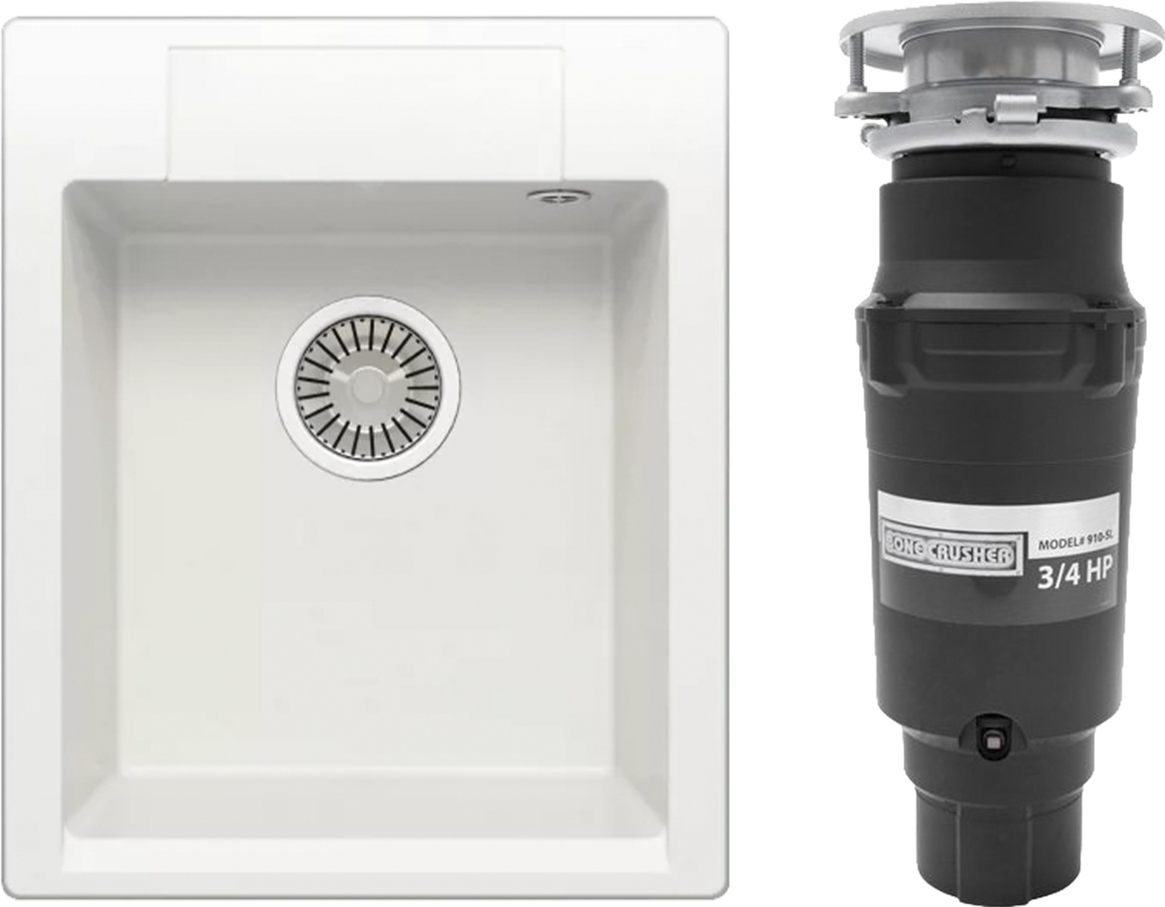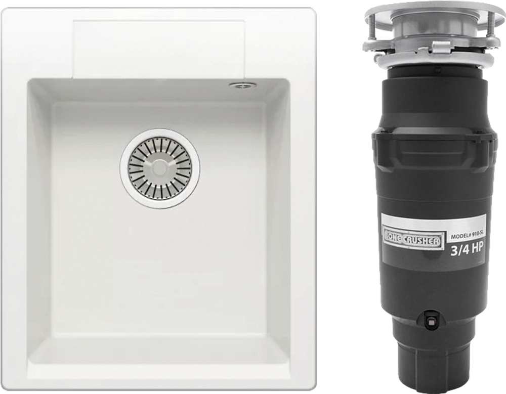 Комплект Мойка Polygran Argo 420, белый хлопок + Измельчитель Bone Crusher BC 910-SL-Slim Line