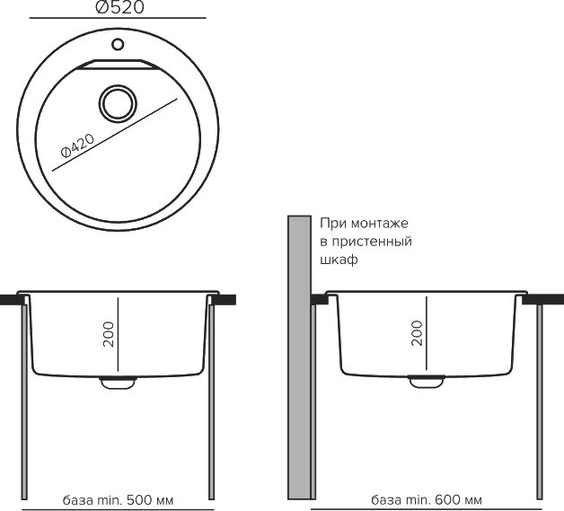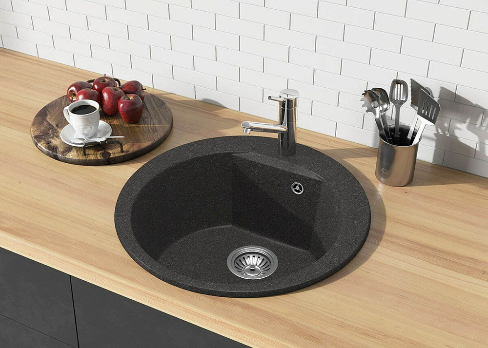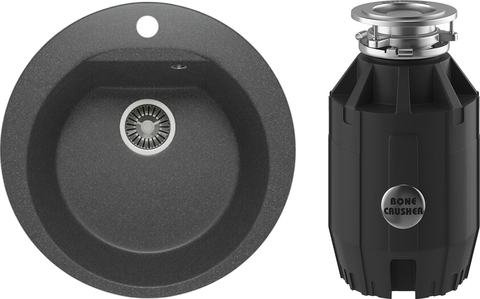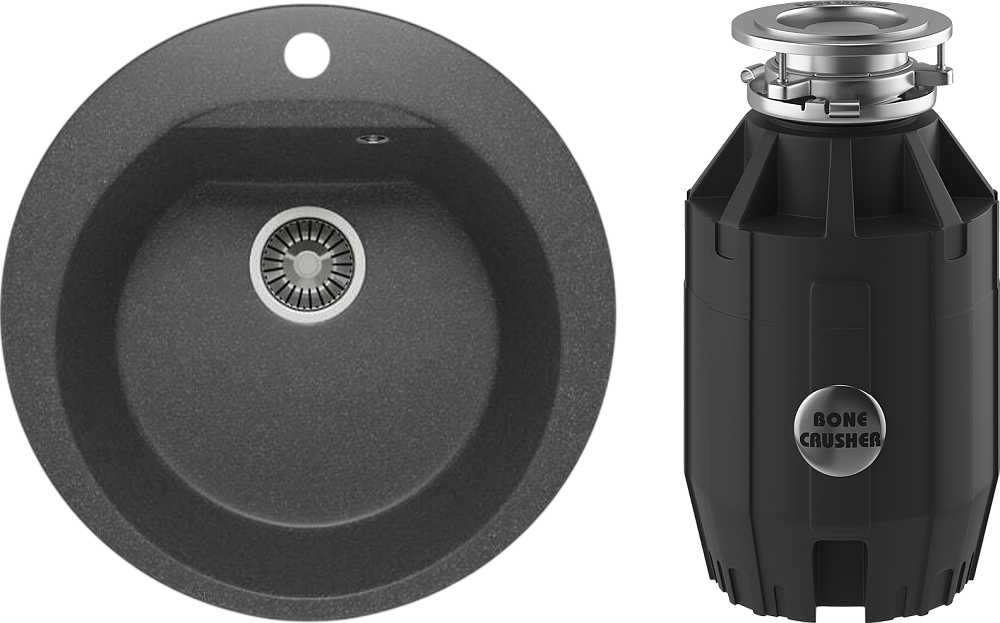 Комплект Мойка Polygran Atol 627444, черная + Измельчитель Bone Crusher BC 910-AS